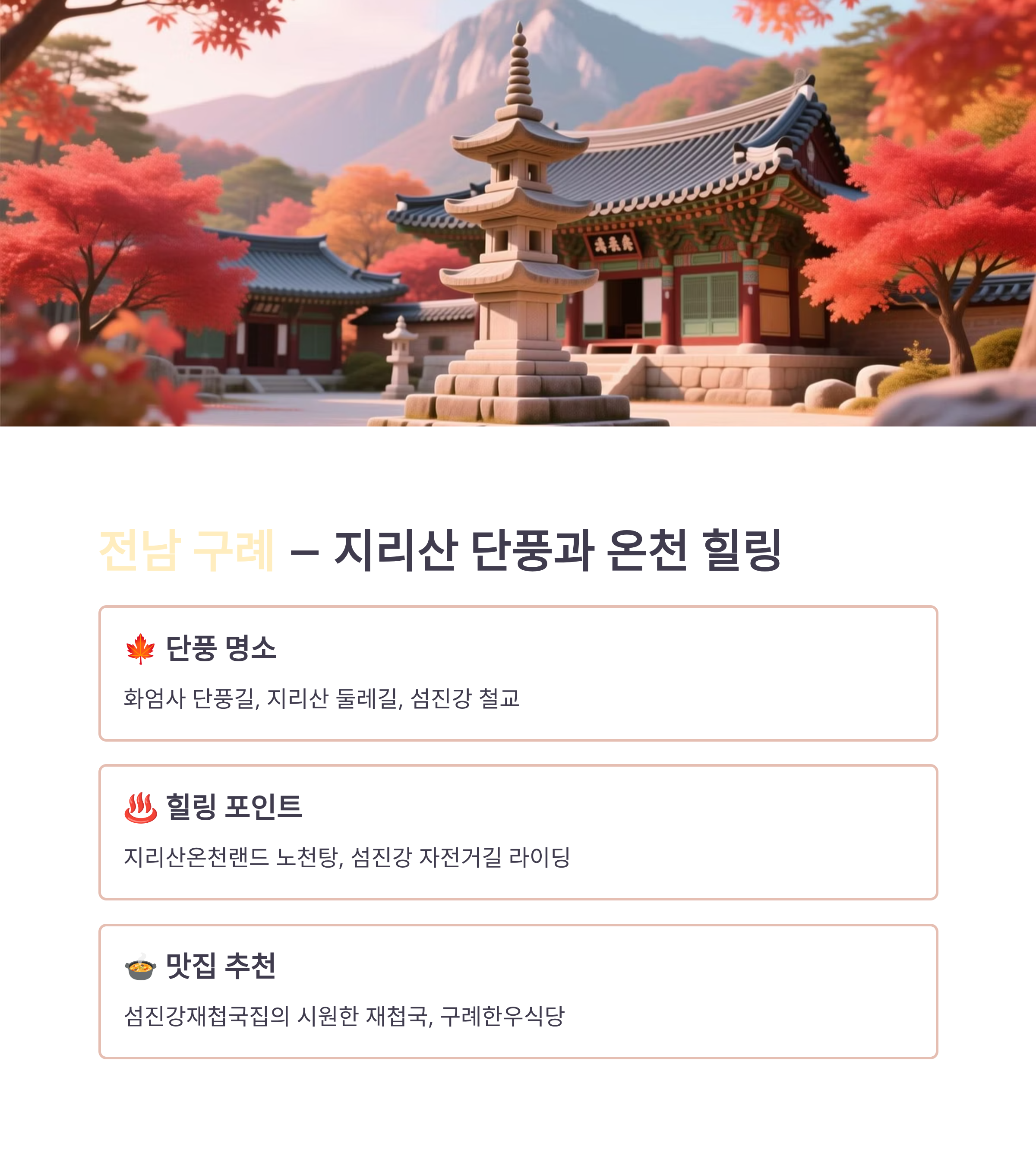 전남 구례 – 지리산 자락에서 만나는 단풍과 온천