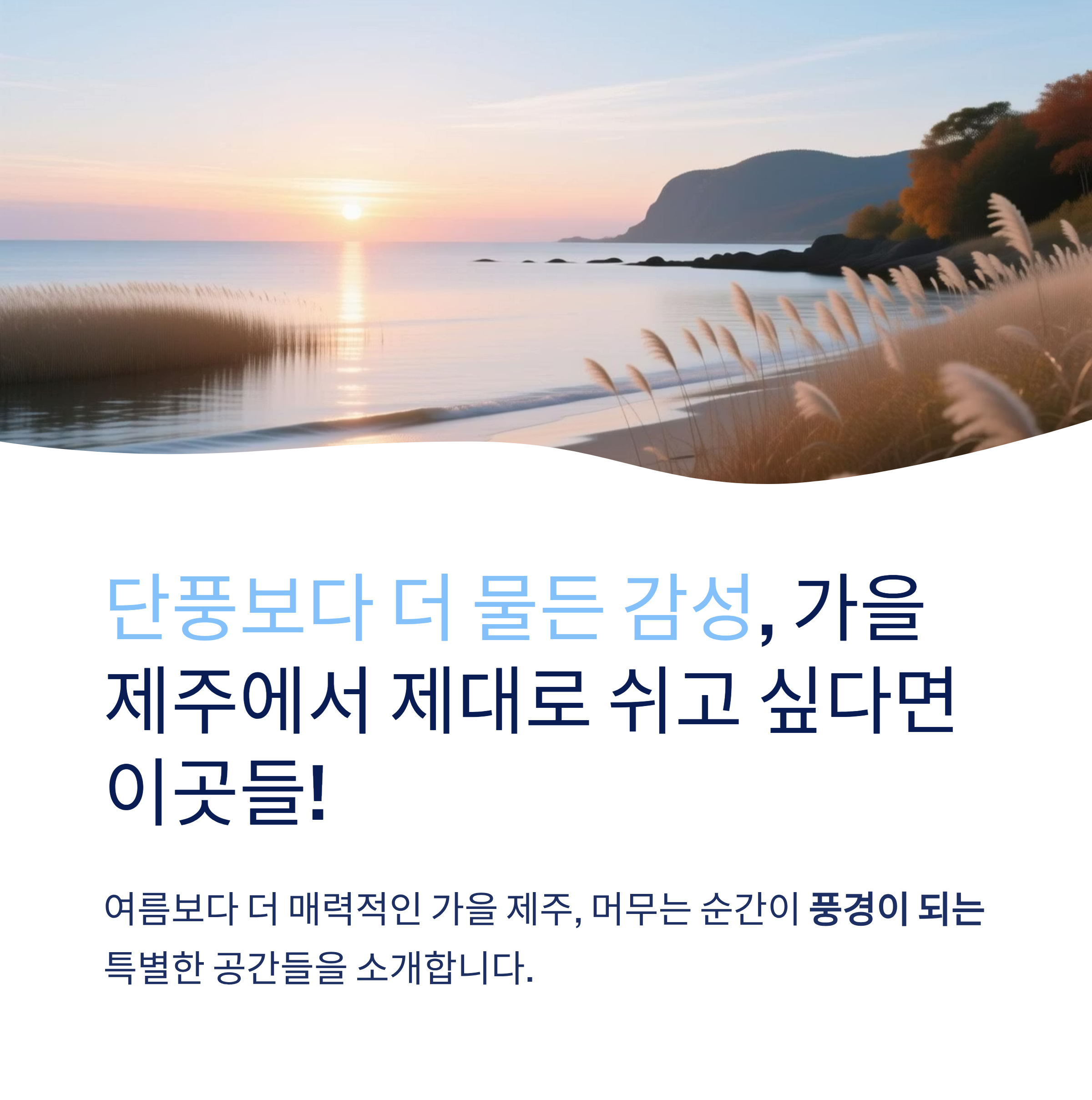제주도는 여름보다 오히려 가을에 진가를 발휘하는 여행지예요. 한적한 해변, 부드러운 노을, 은은한 억새와 갈대, 그리고 그 안에 녹아든 감성 숙소와 감성 카페들.