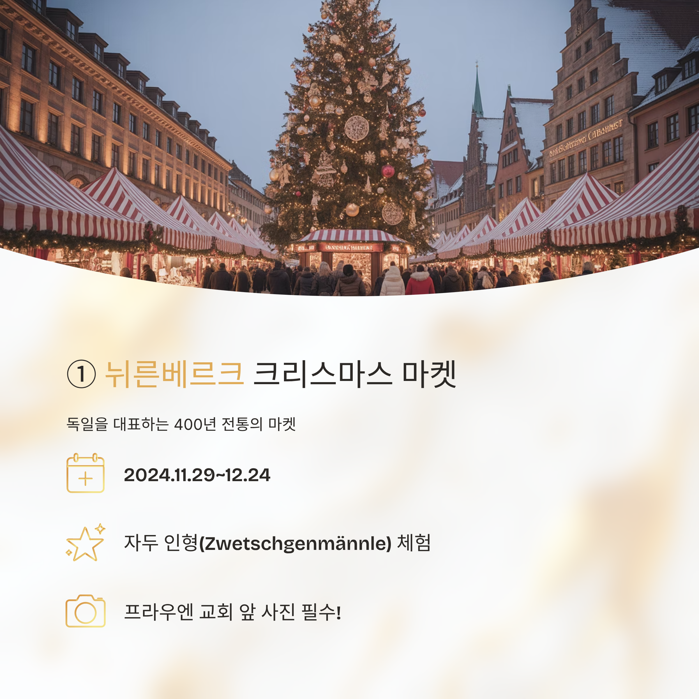 아이부터 어른까지 모두가 ‘진짜 크리스마스’를 체험할 수 있는 곳이 바로 독일의 크리스마스 마켓입니다.이번 글에서는 독일 현지 여행자 추천, SNS 후기, 유럽 블로그 분석을 바탕으로