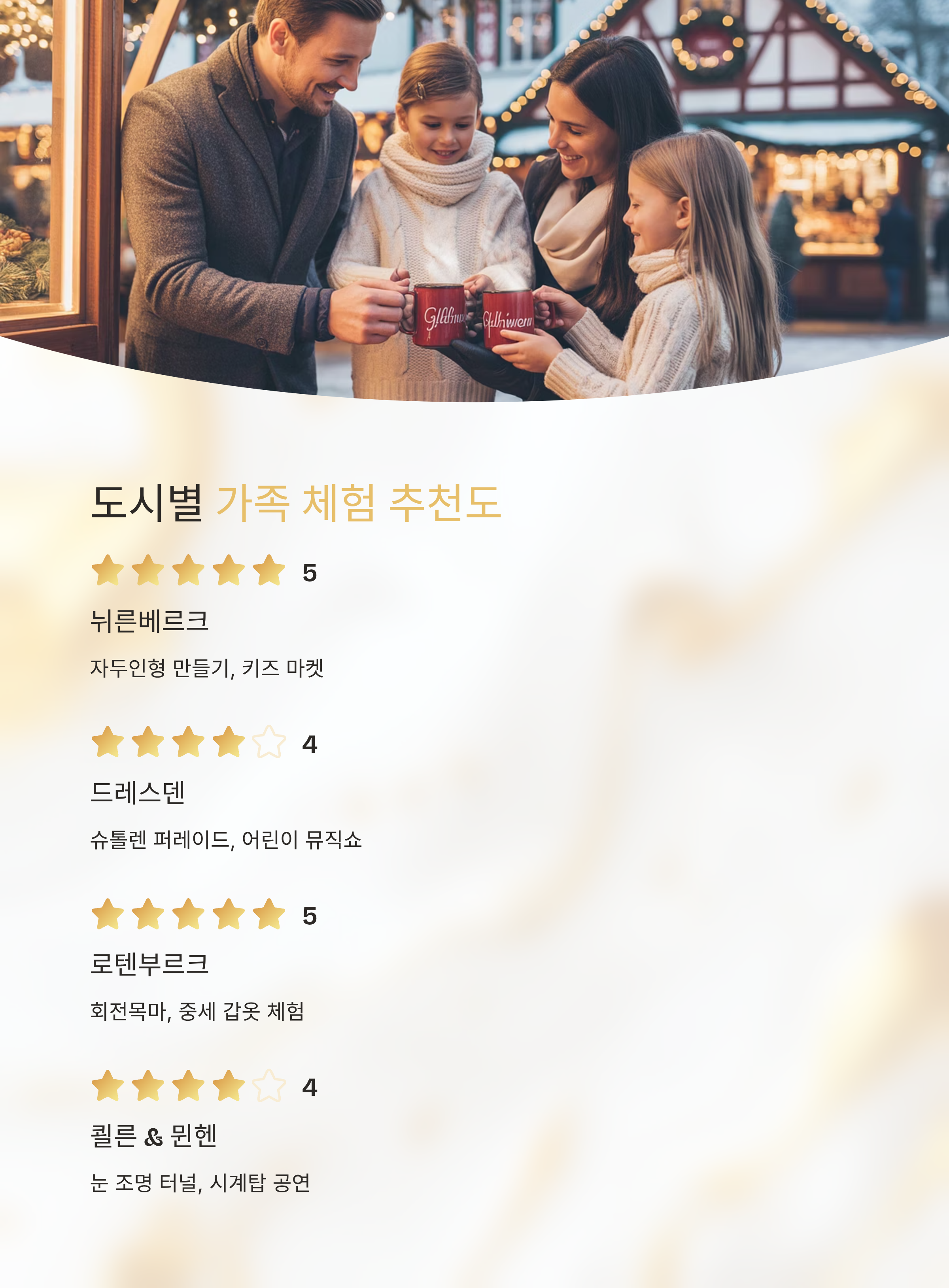 "아이와 함께 자두 인형 만들기 체험이 인상 깊었어요. 독일의 전통이 살아 숨쉬는 느낌이었죠."주변맛집추천