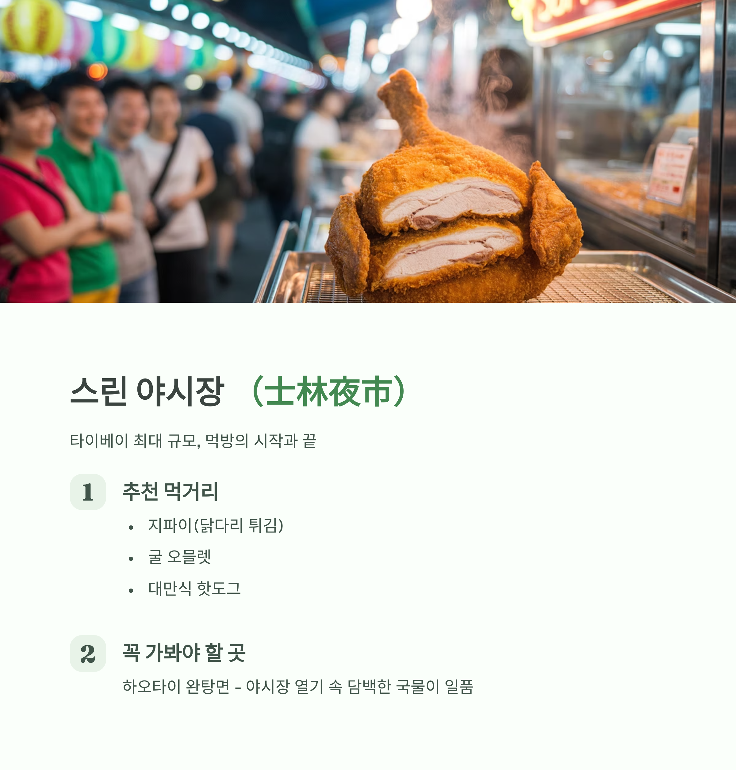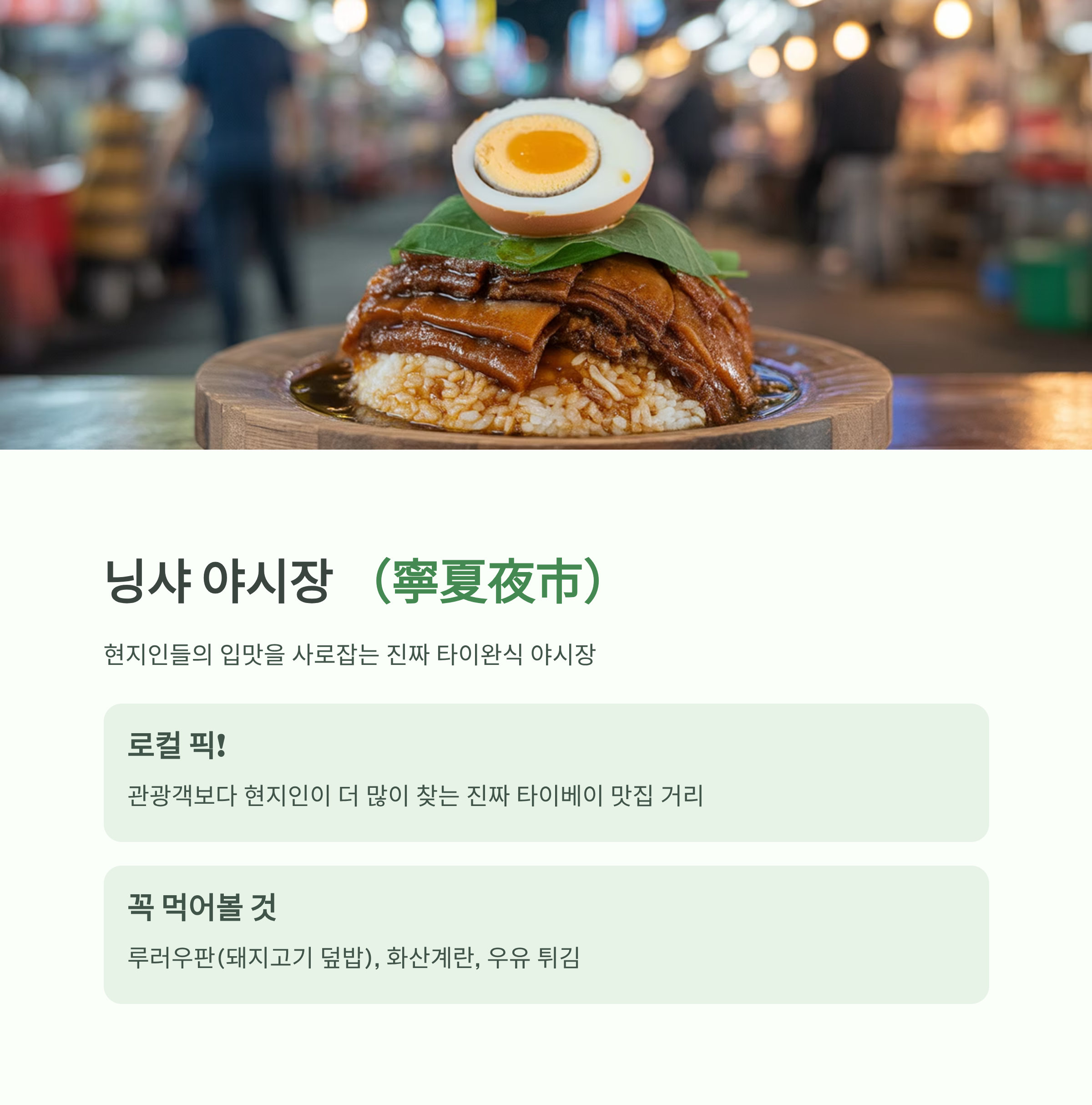 단순한 먹거리를 넘어서 타이완의 문화와 감성, 그리고 삶의 리듬이 녹아 있는 공간이죠.