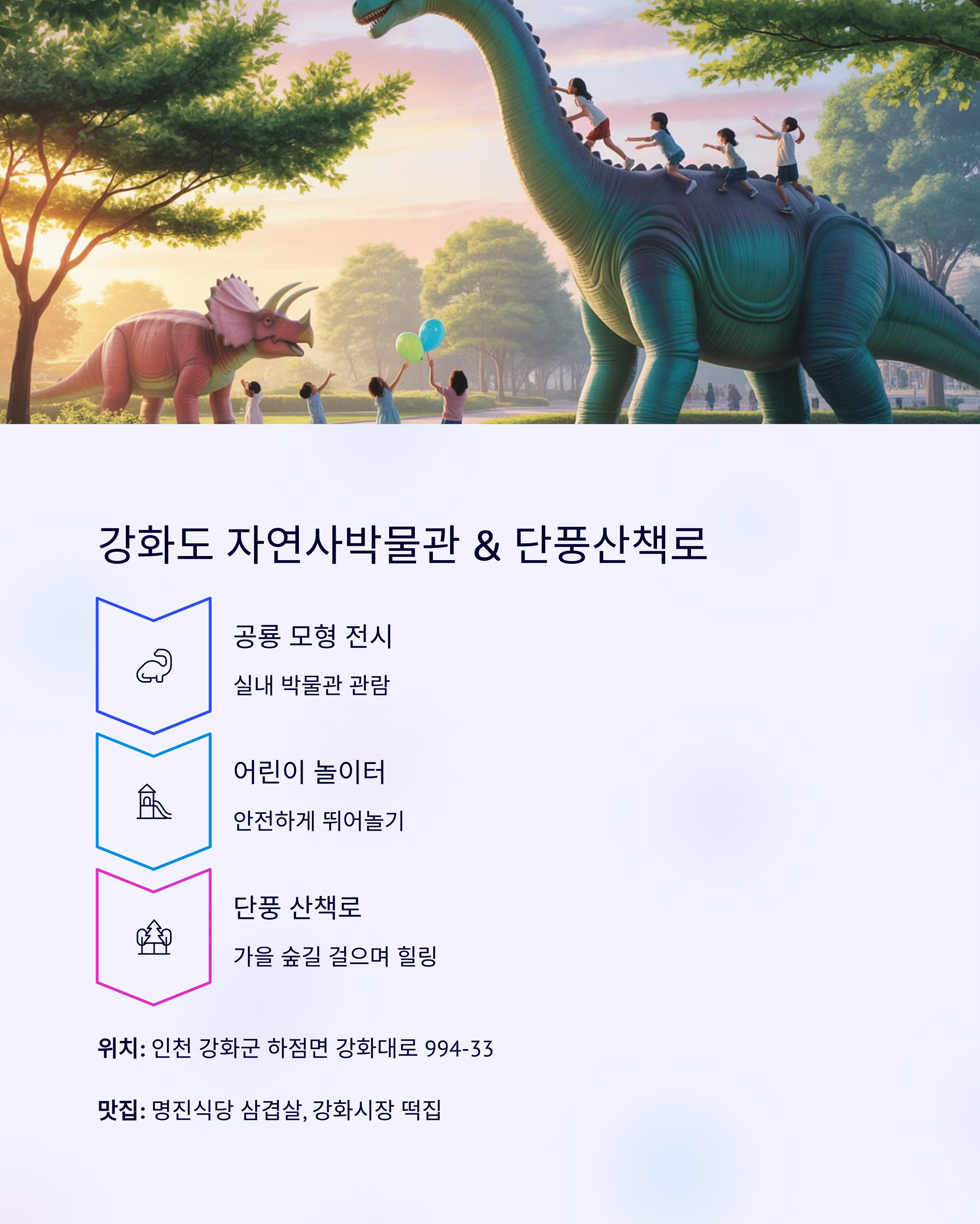 즐길거리: 자연사 전시 관람, 어린이 놀이터, 단풍 산책