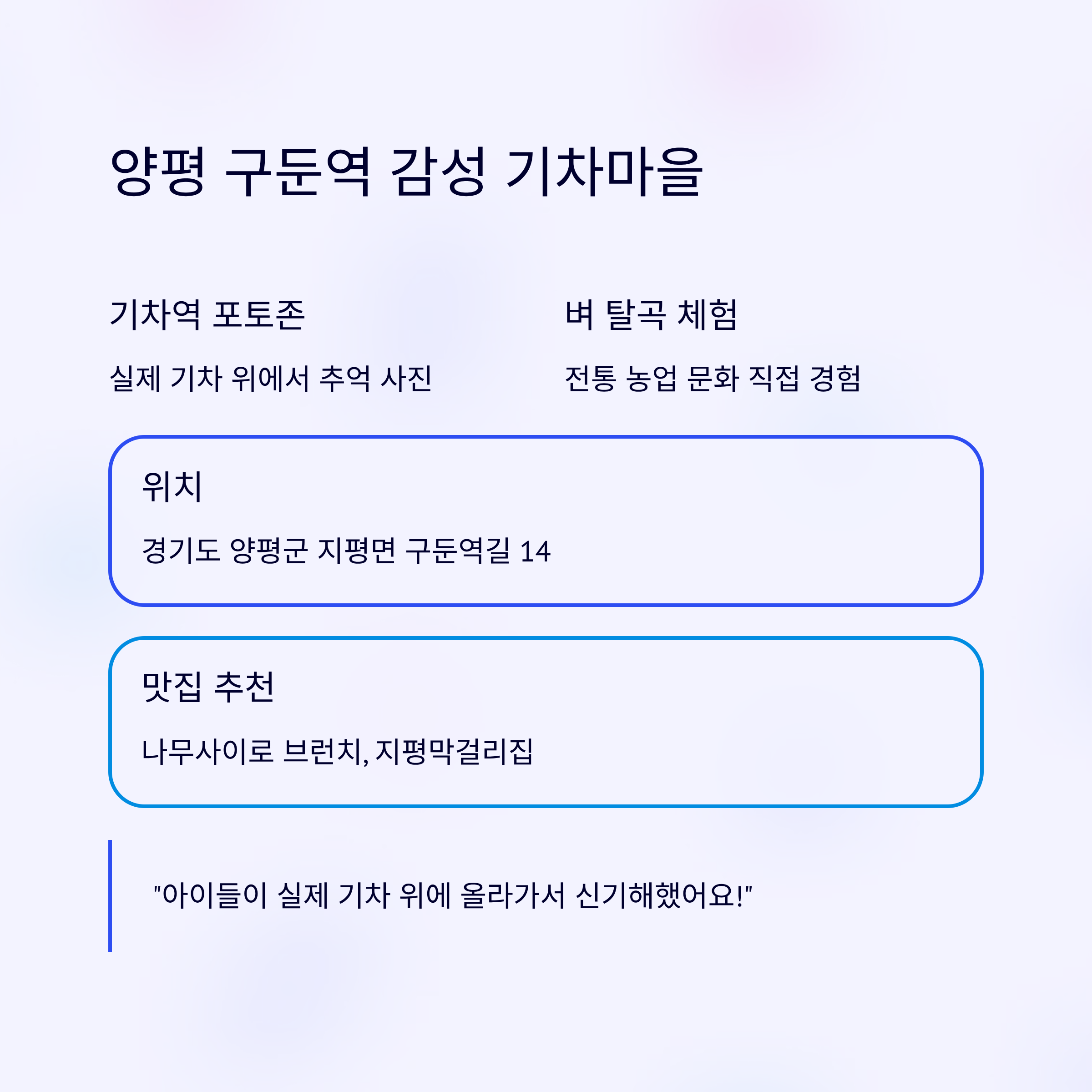 “아이들이 실제 기차 위에 올라가서 신기해했어요. 촬영용 소품도 많아 가족사진 건지기 딱이에요.”주변 맛집 추천