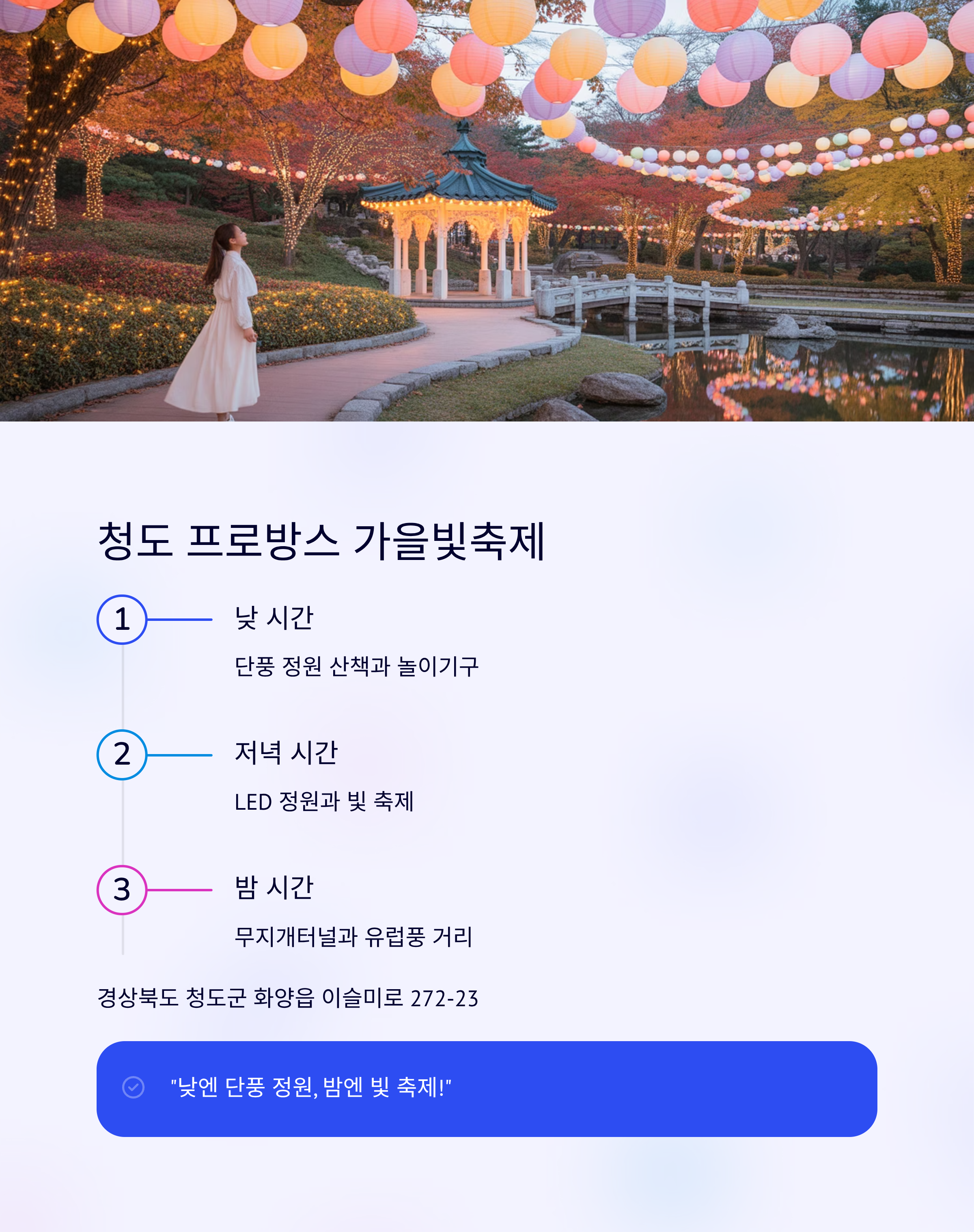 특징: 가을 야외정원 + 빛 축제 + 놀이마당이 결합된 테마파크