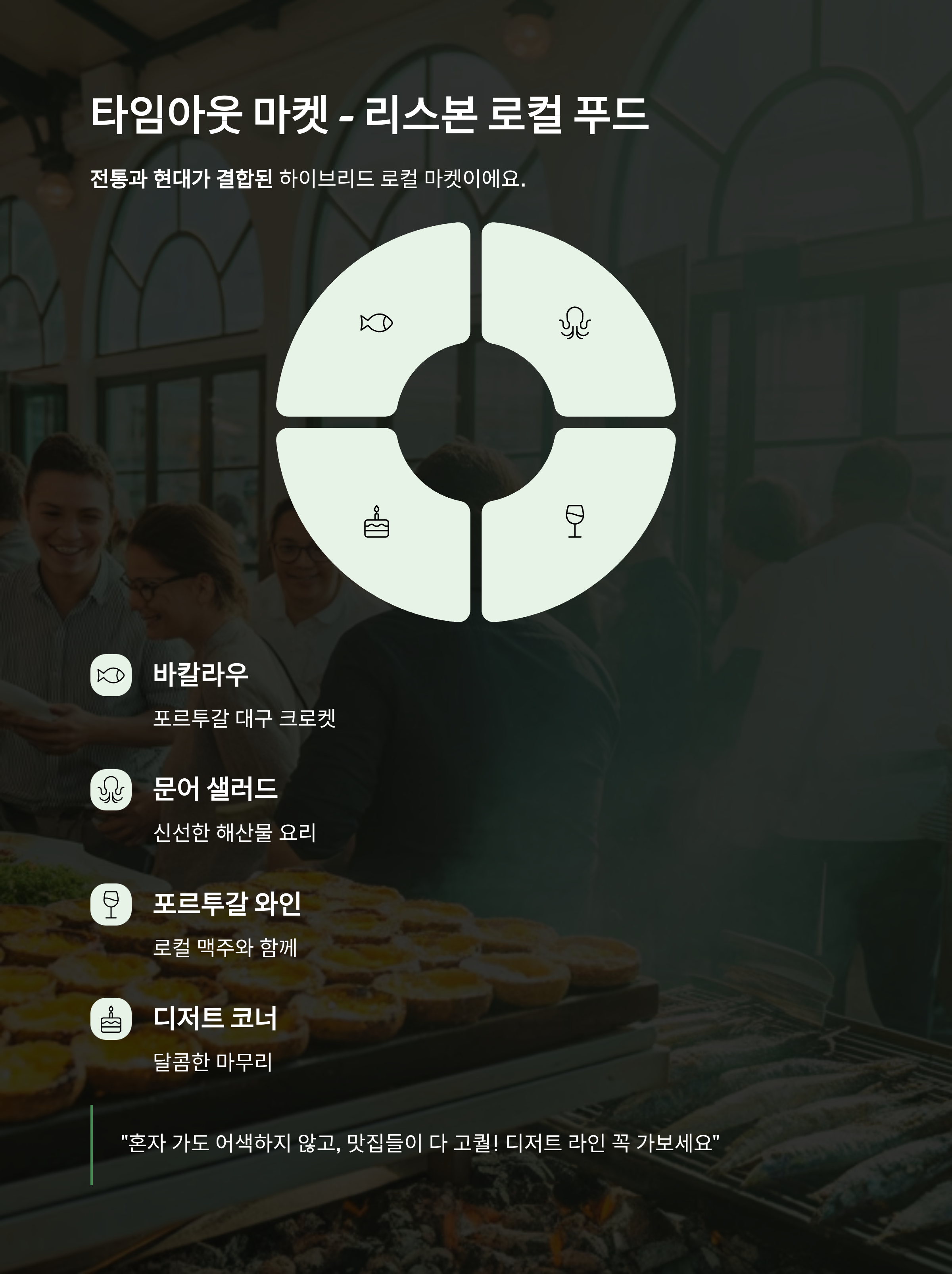 바칼라우 크로켓, 문어 샐러드, 포르투갈 와인 & 맥주 시음, 디저트 코너포토스팟