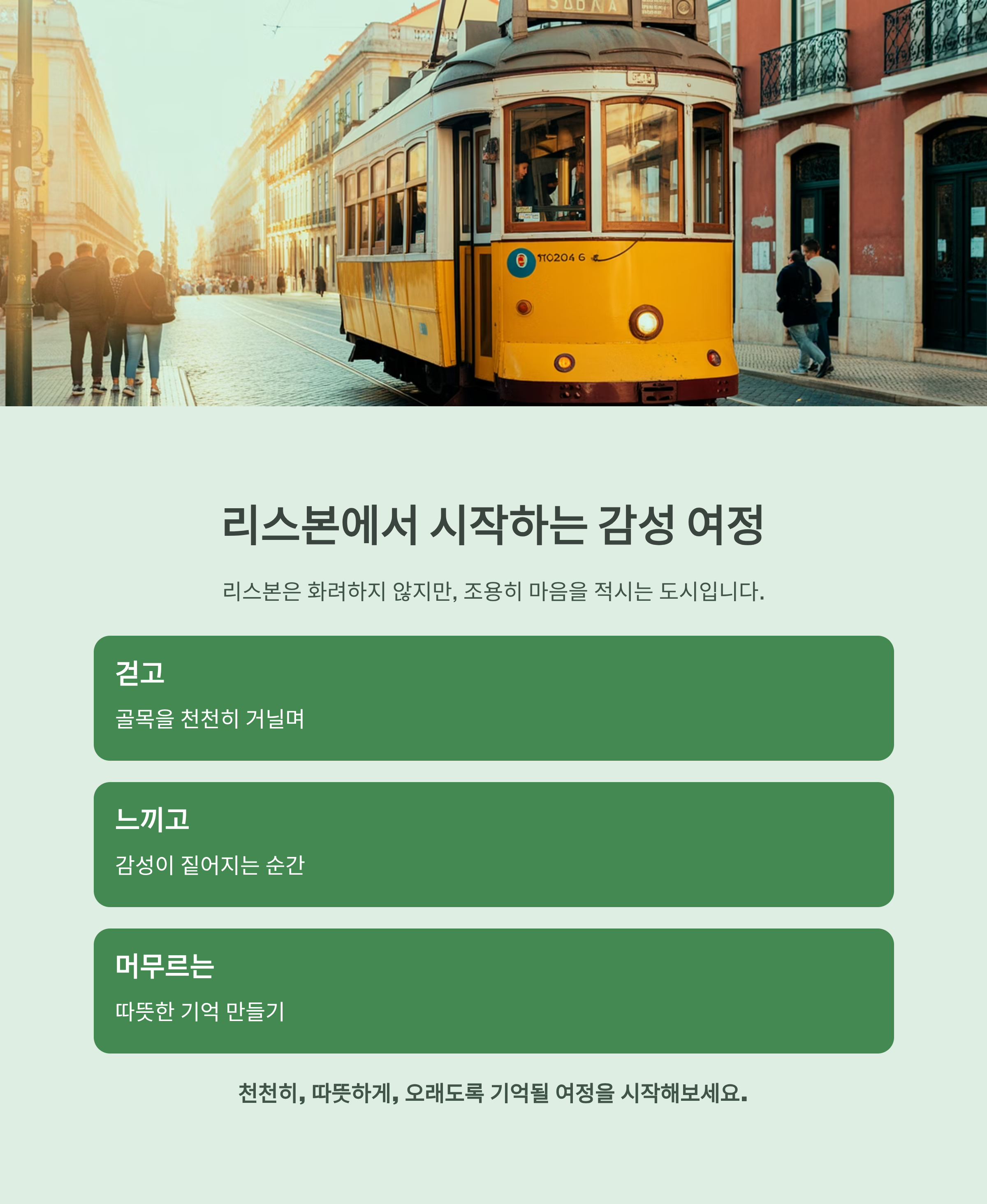 리스본은 화려하지 않지만, 조용히 마음을 적시는 도시입니다.