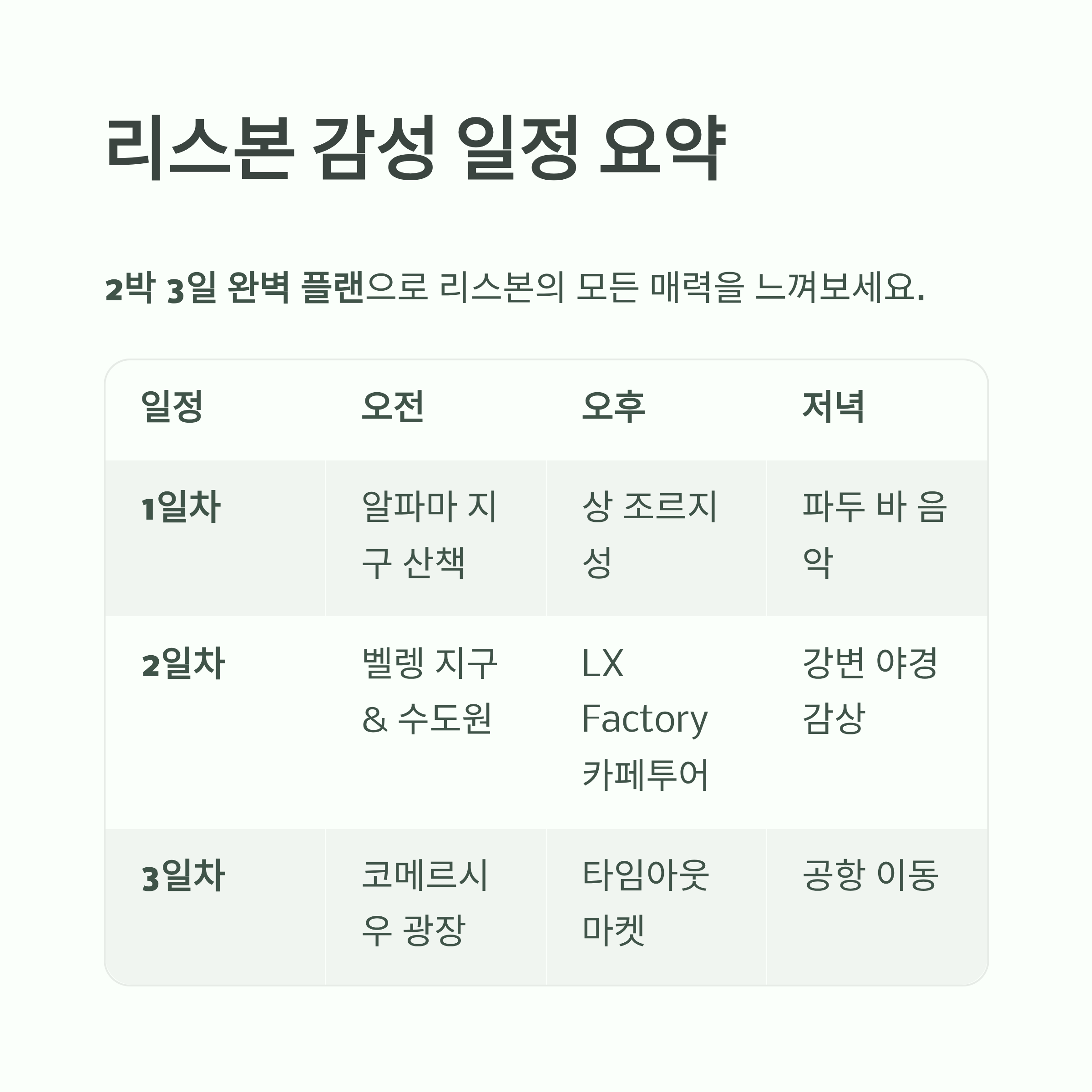 리스본 감성 일정 요약 (2박 3일 플랜)