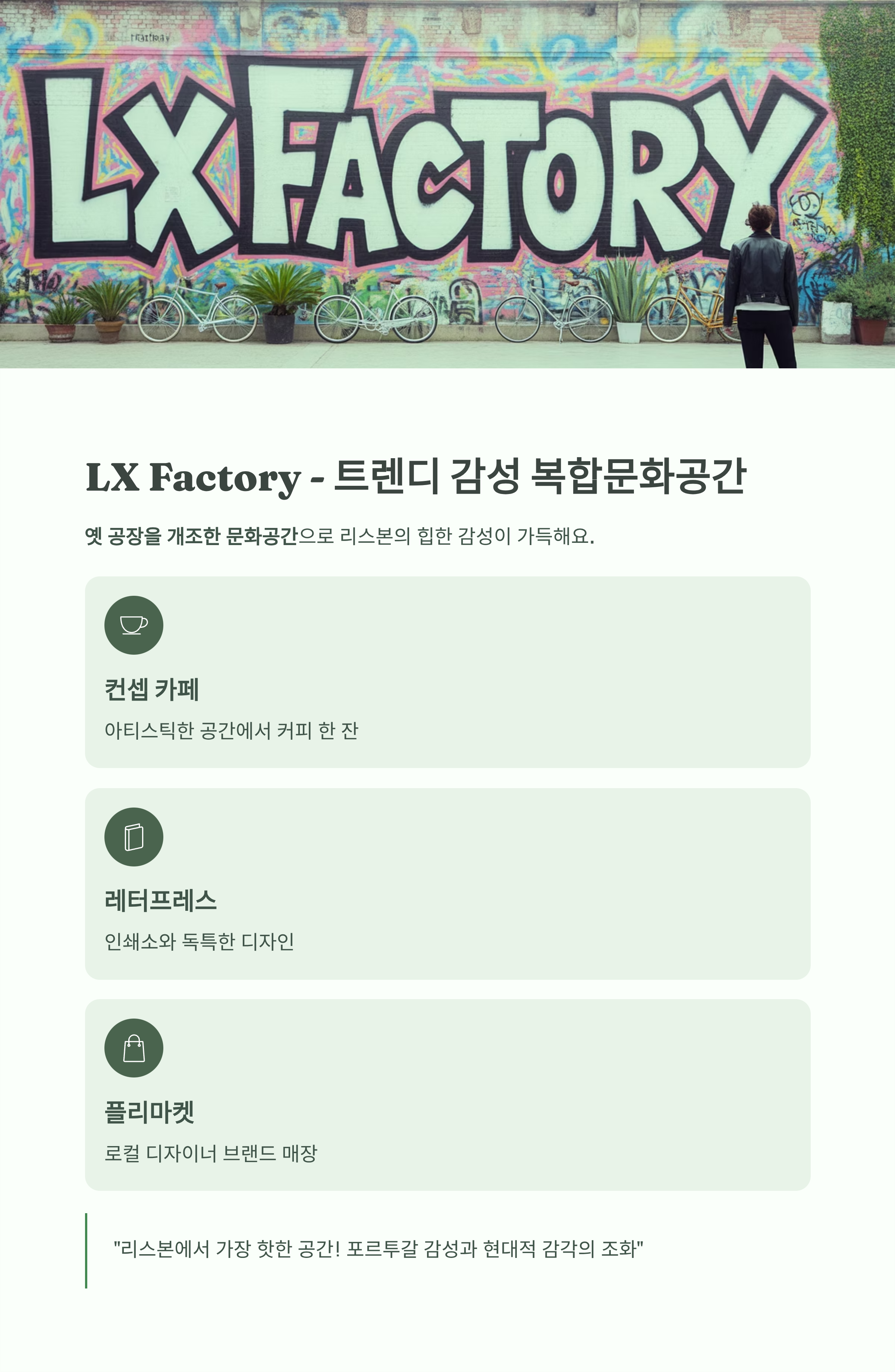 4. LX Factory – 트렌디 감성 복합문화공간