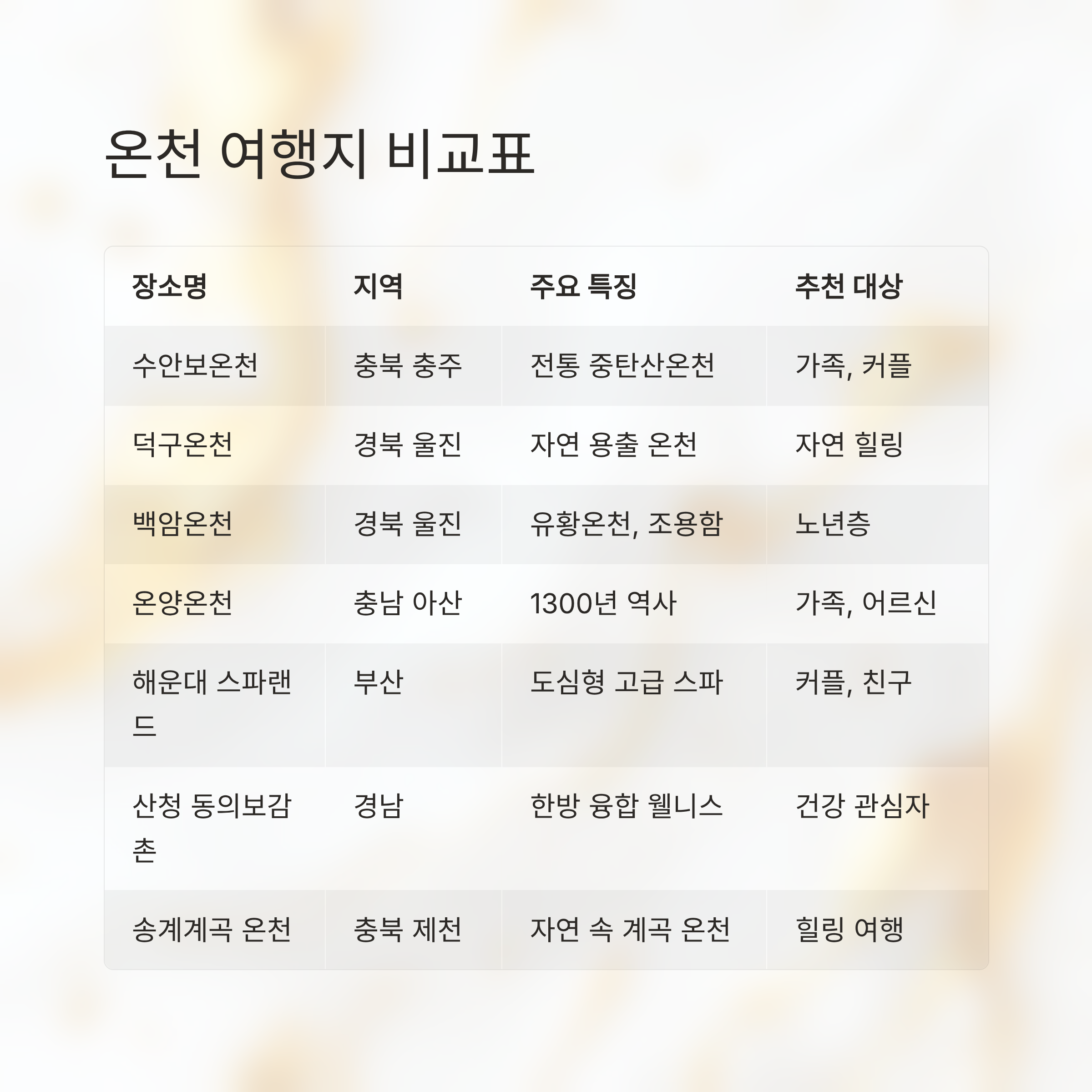 온천 여행지 비교표