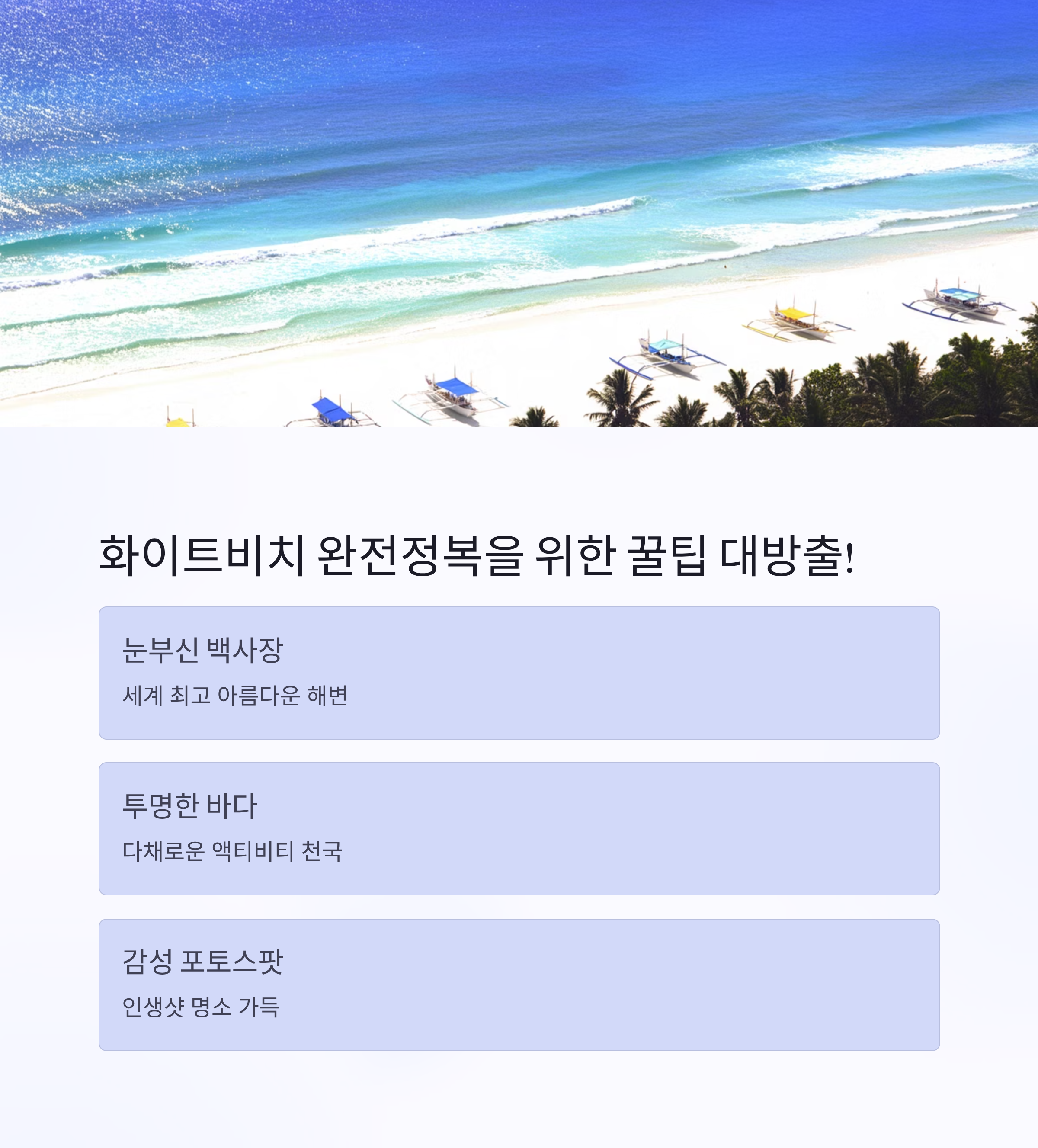 보라카이 화이트비치 여행 꿀팁 총정리여행 2025. 10. 3. 19:00