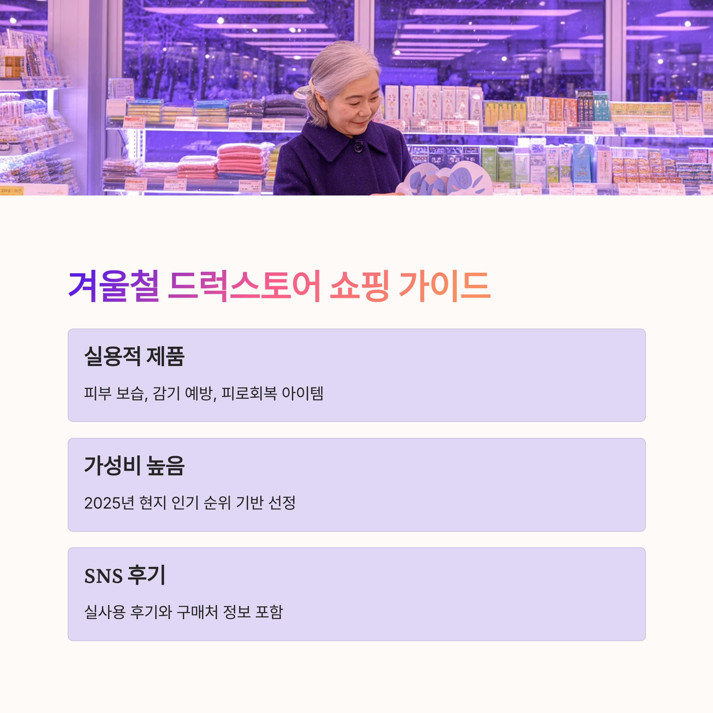 최신 SNS 후기와 2025년 가을 기준 현지 인기 순위를 바탕으로 일본 드럭스토어 겨울 필수템 TOP10을 정리했습니다.