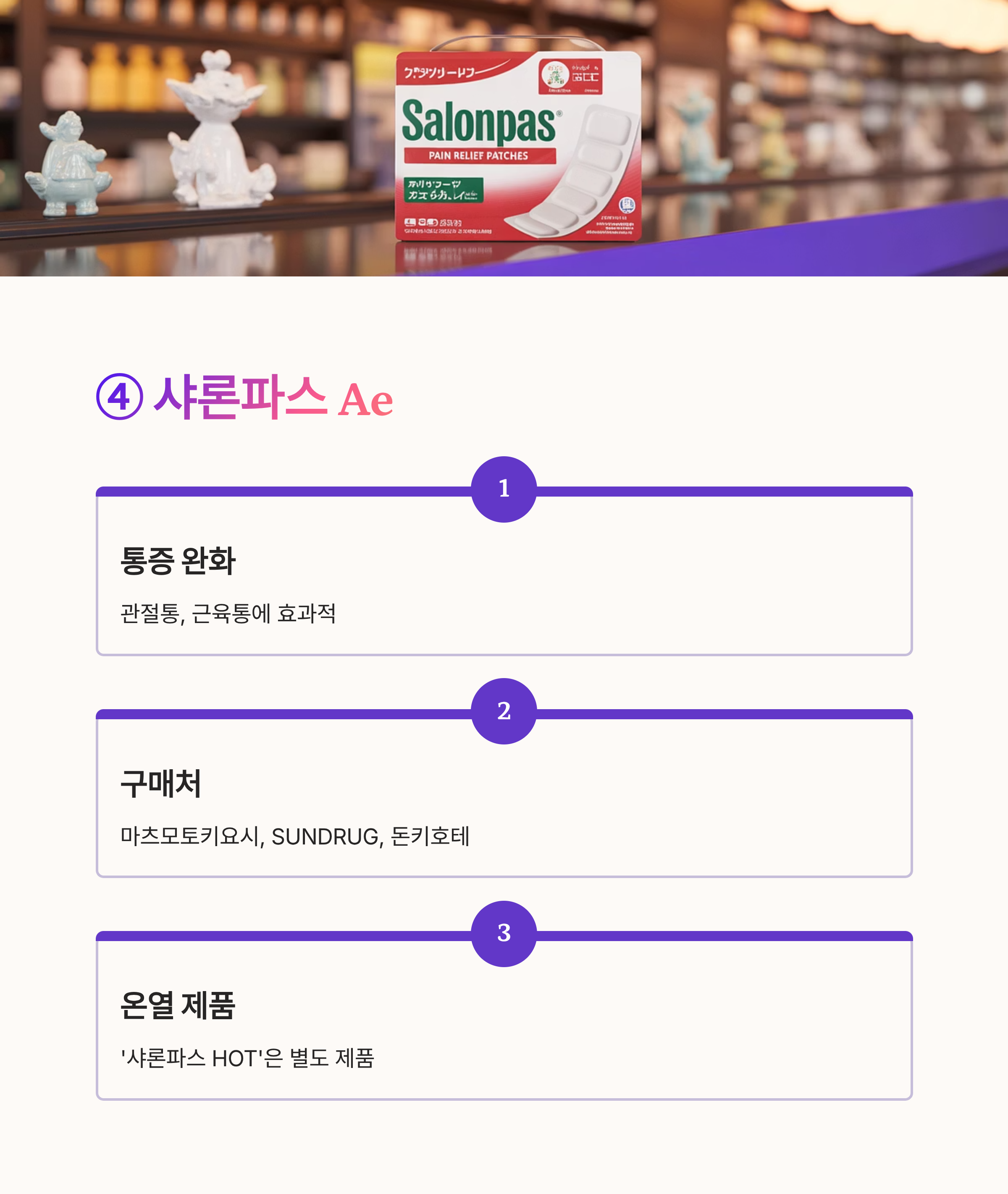 "관절통 있는 부모님 선물로 매년 사 갑니다. 붙이면 시원하면서도 통증이 줄어요."※ 온열 제품은 '샤론파스 HOT' 또는 '하리바 Hot' 이름으로 판매