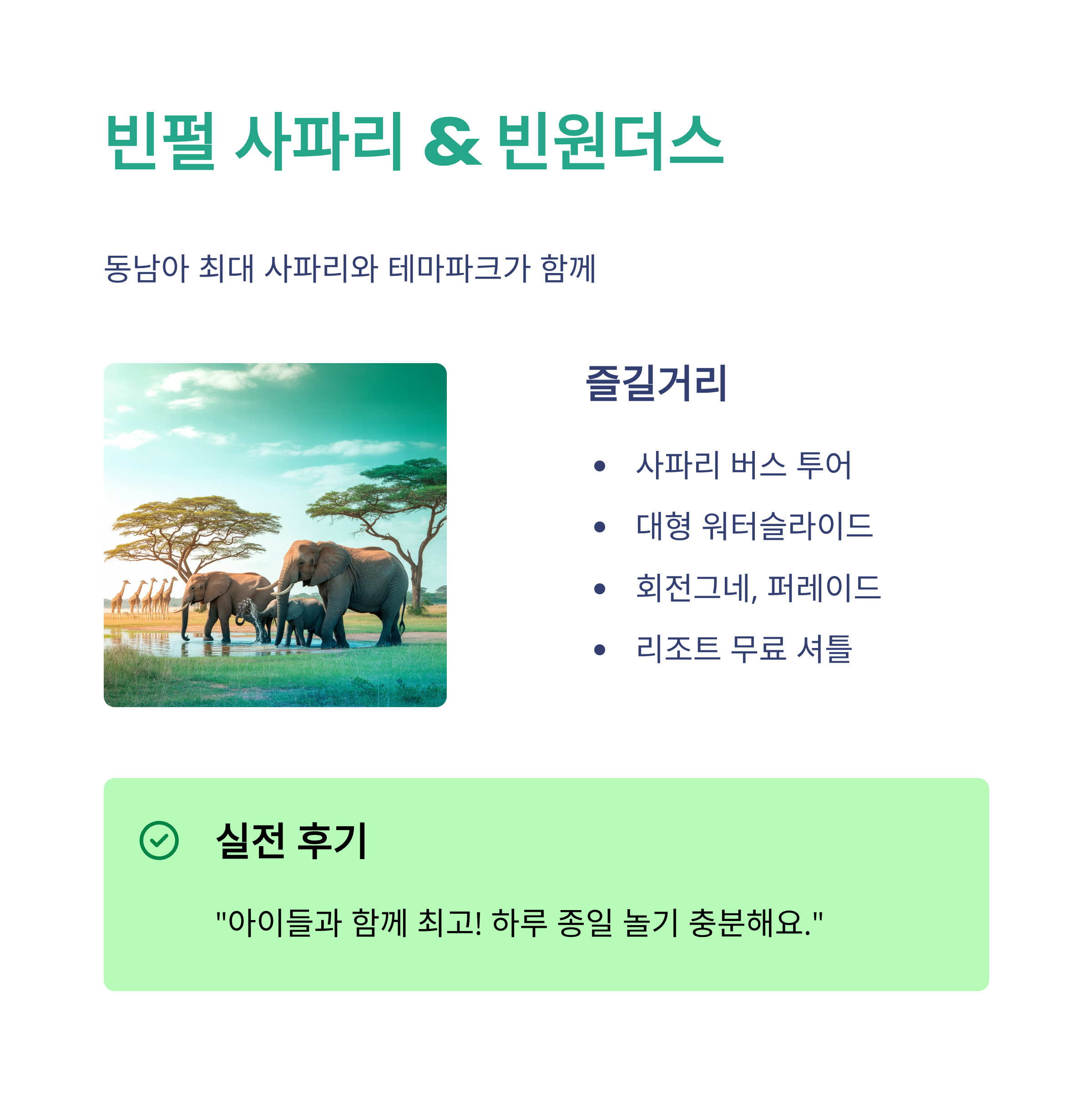 특징: 동남아 최대 사파리와 테마파크가 함께즐길거리: