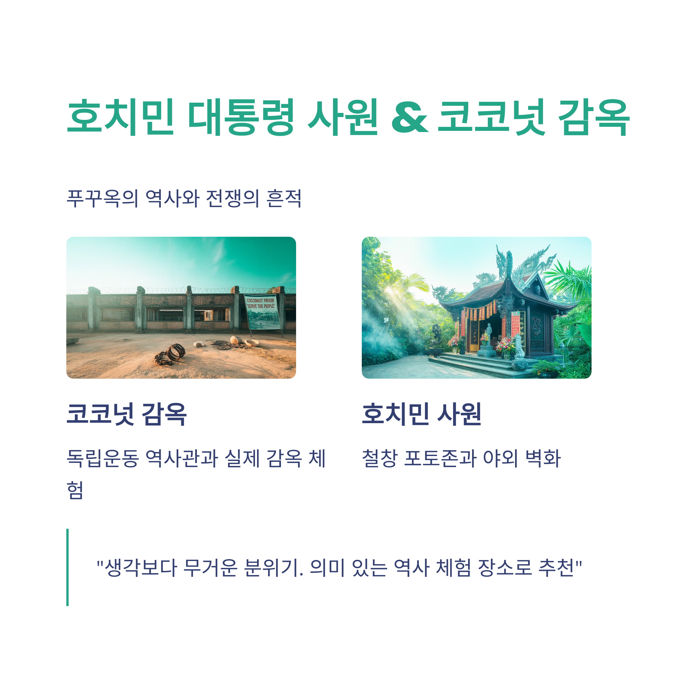 특징: 푸꾸옥의 역사와 전쟁의 흔적을 느낄 수 있는 장소즐길거리:
