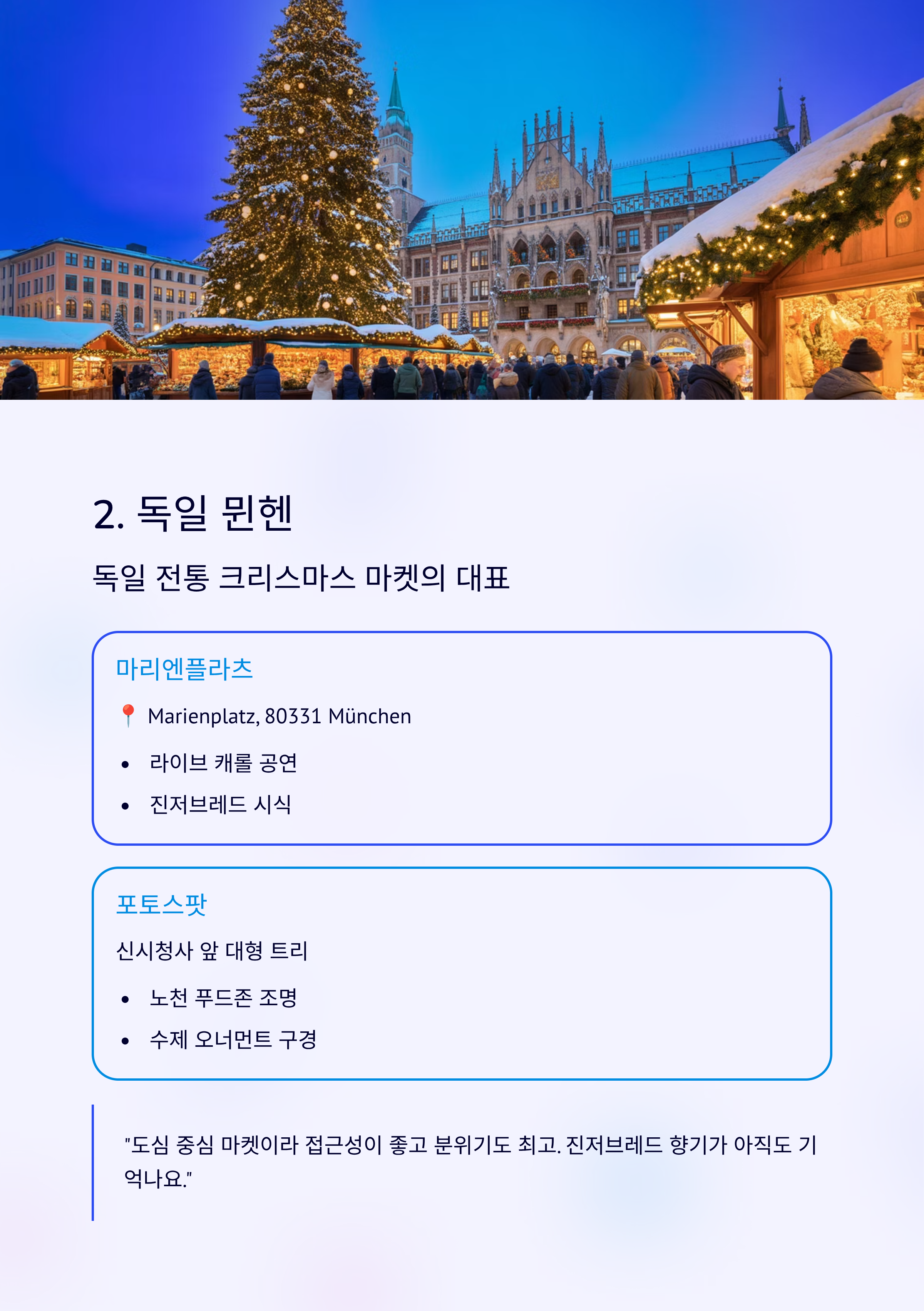 "말 그대로 유럽 동화! 시장 규모도 크고, 전통이 살아 있어서 유럽 크리스마스 감성을 제대로 느낄 수 있는 곳이에요."