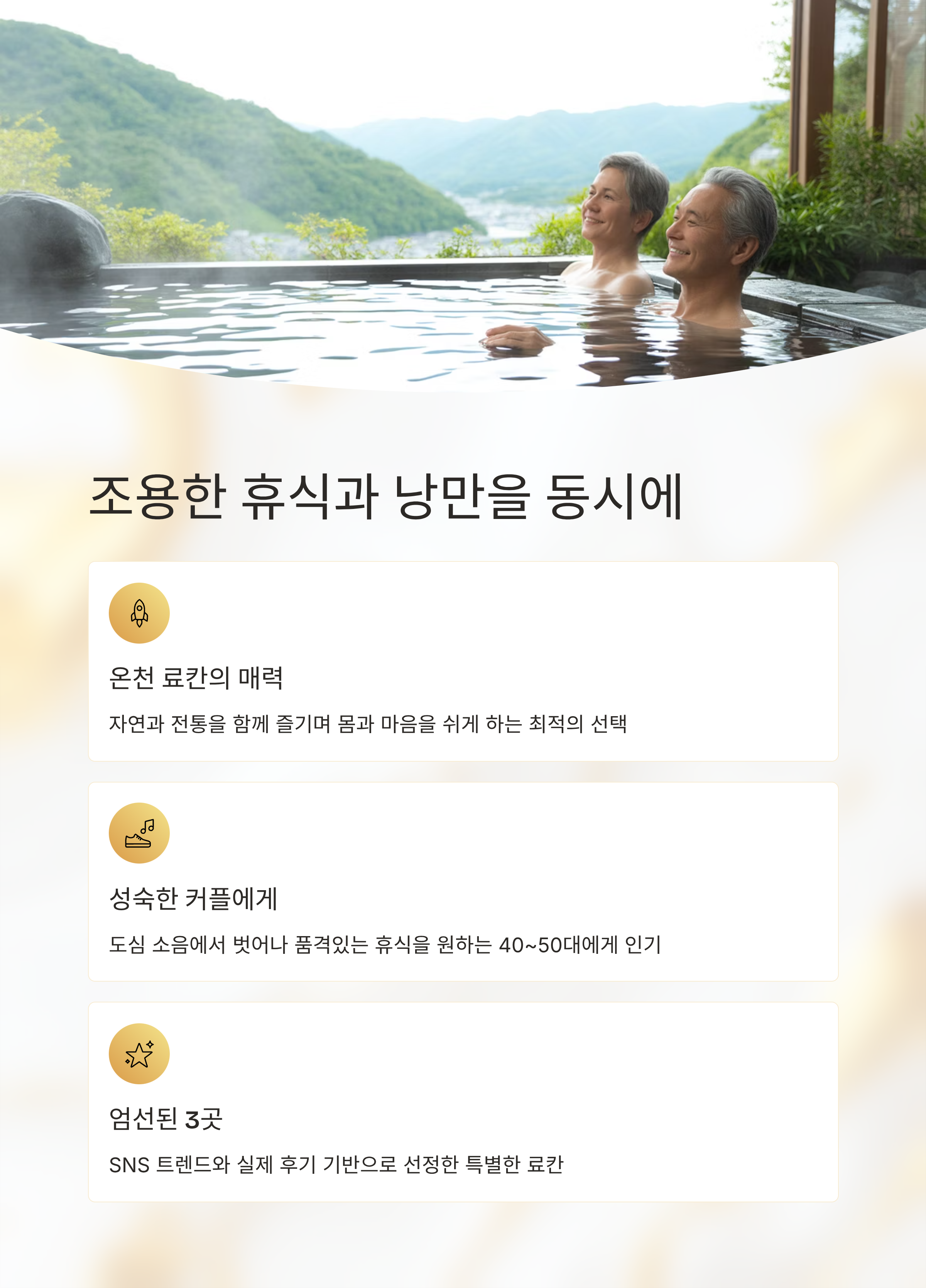 조용한 휴식과 낭만을 동시에, 성숙한 커플에게 어울리는 일본 온천 료칸 추천