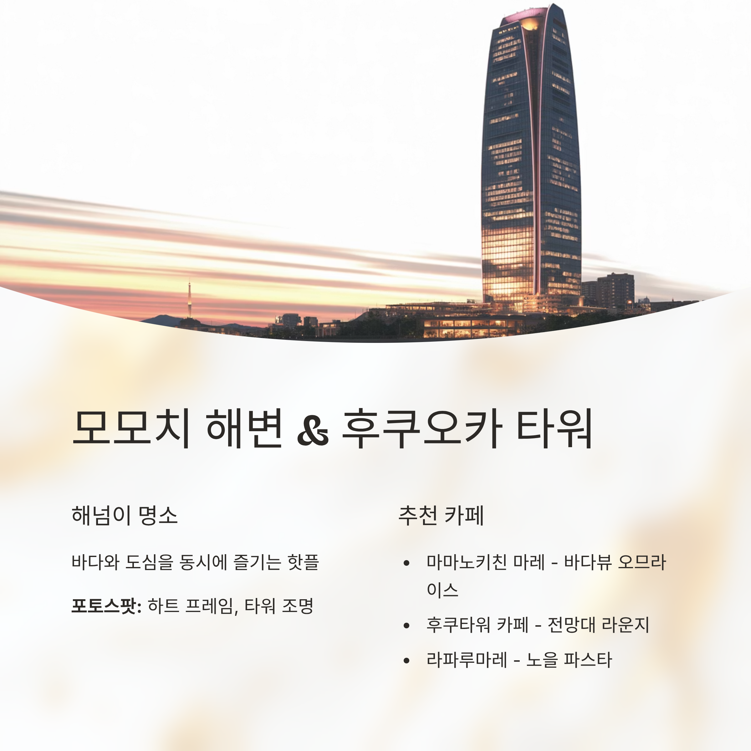 모모치 해변 & 후쿠오카 타워 – 해넘이와 야경의 콜라보