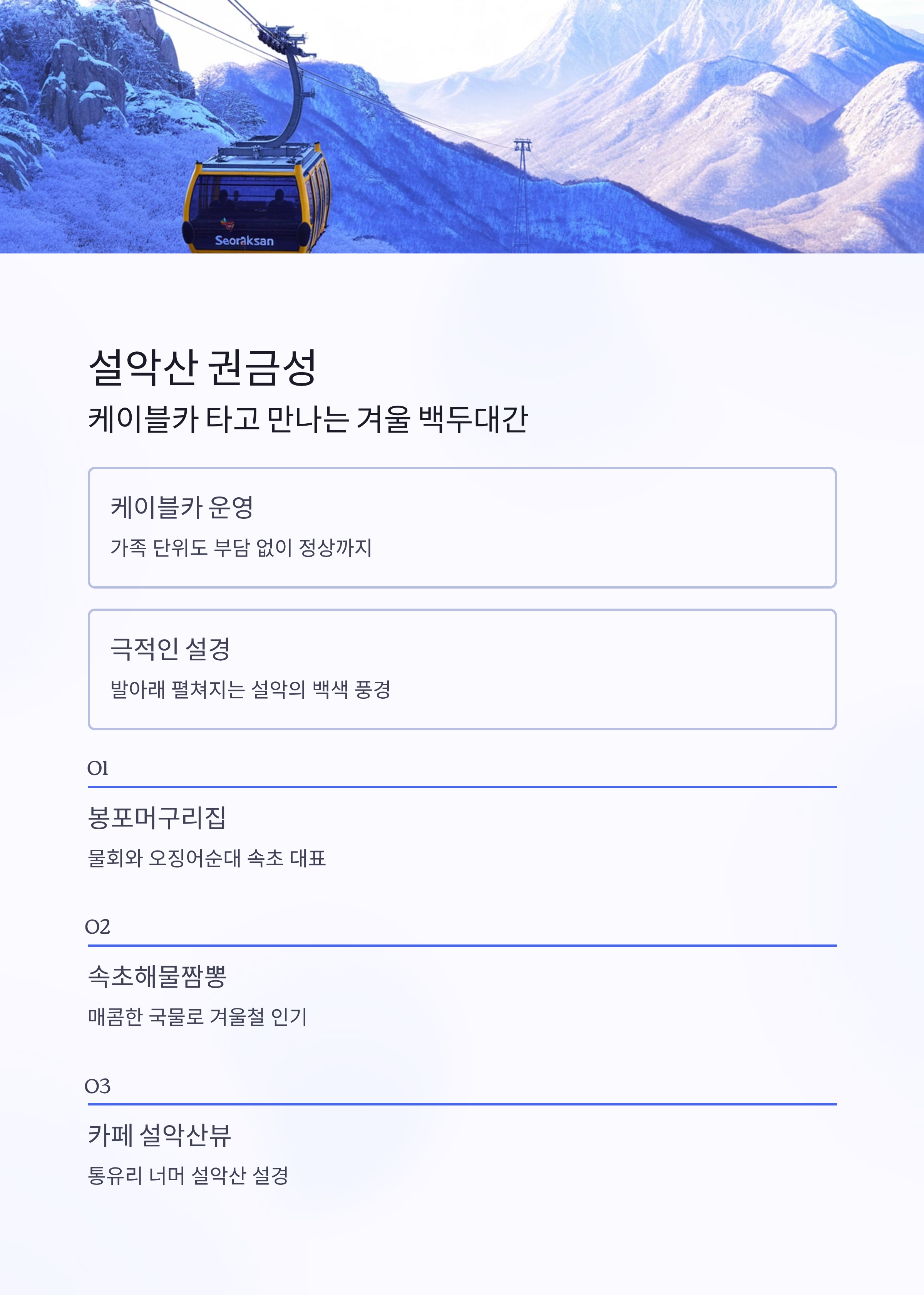 특징: 국내 대표 겨울산, 케이블카 운영