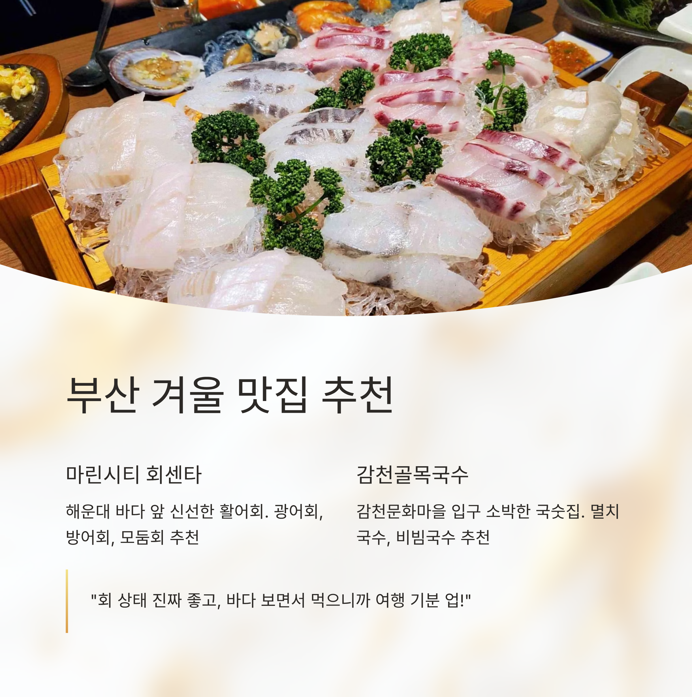 부산 겨울여행 중 꼭 가봐야 할 맛집 & 카페 추천