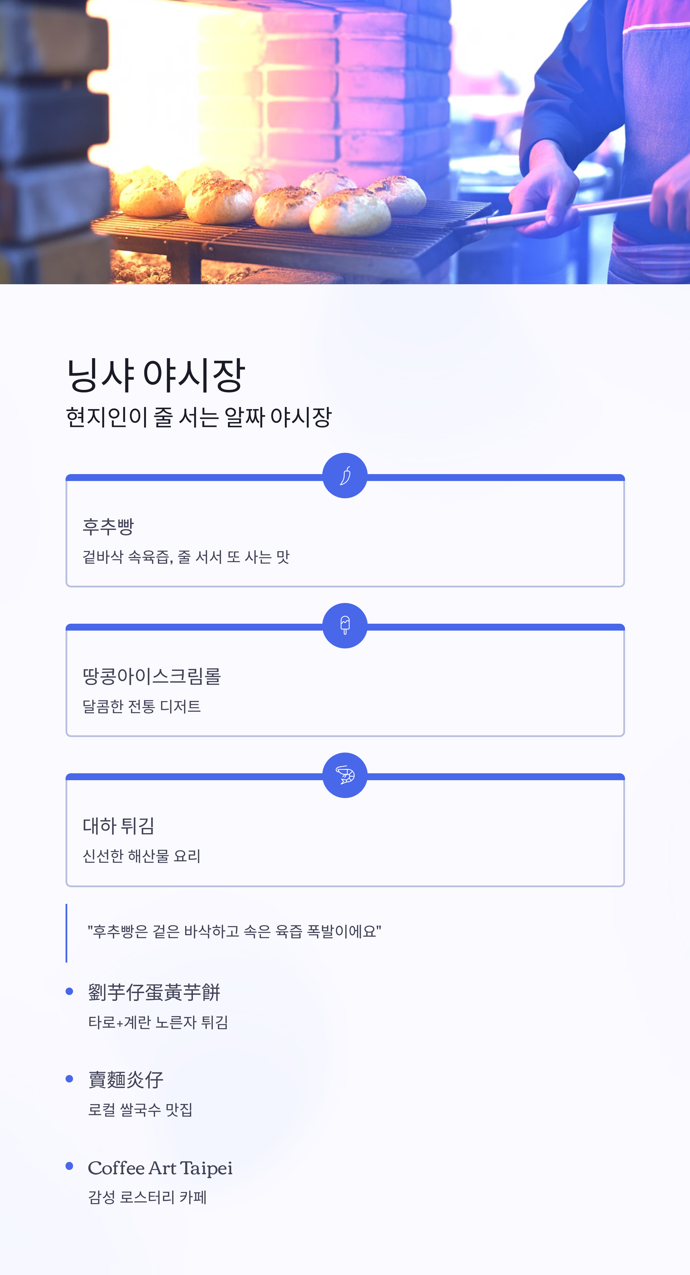 “현지 느낌이 강해서 진짜 대만 사람들 사는 삶 속에 들어간 것 같았어요.”인근 맛집 & 카페 추천