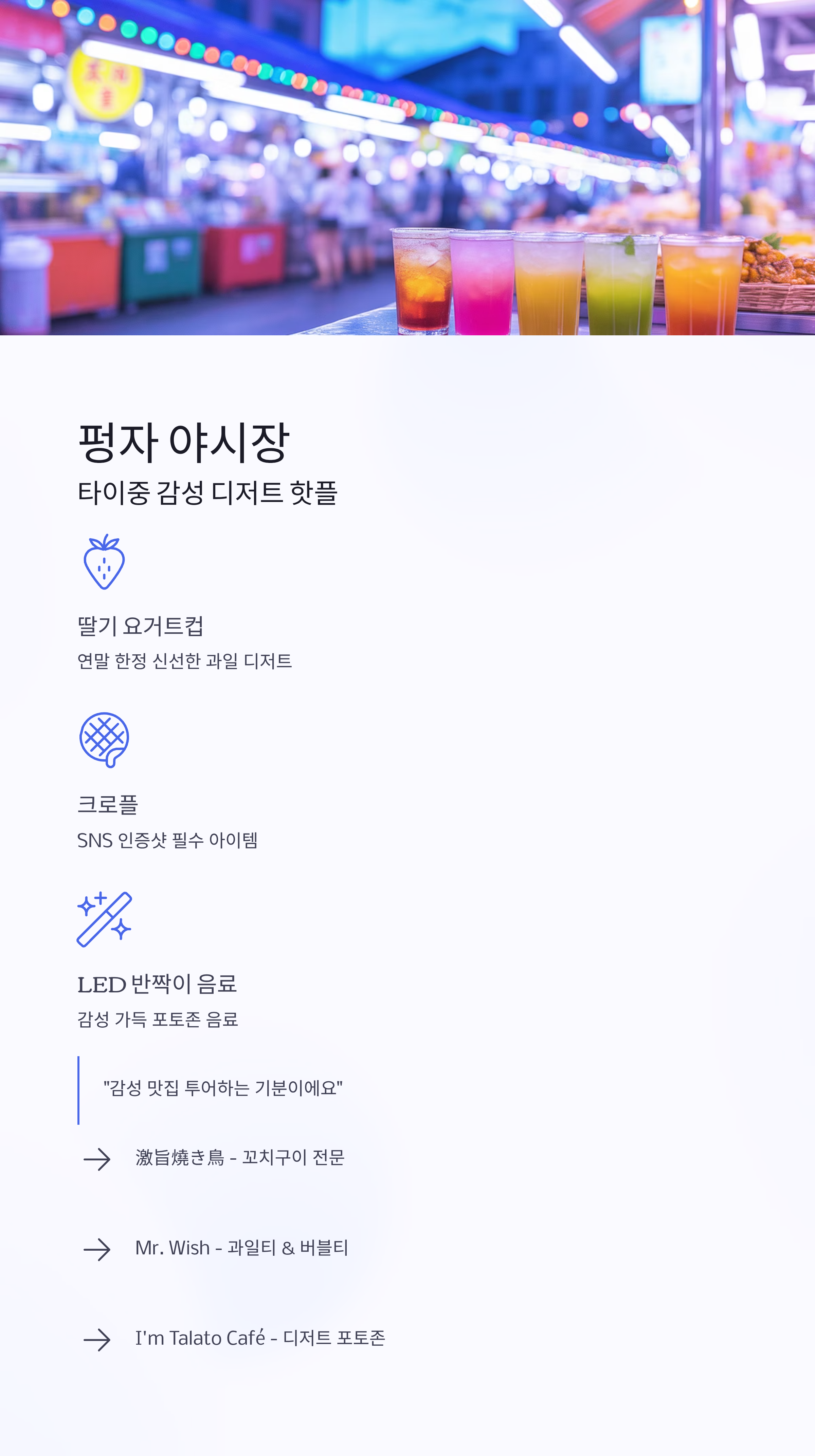 현지인도 줄 서서 먹는 인기 먹거리부터 인스타 감성 넘치는 야시장 디저트까지, 그 매력은 끝이 없죠.