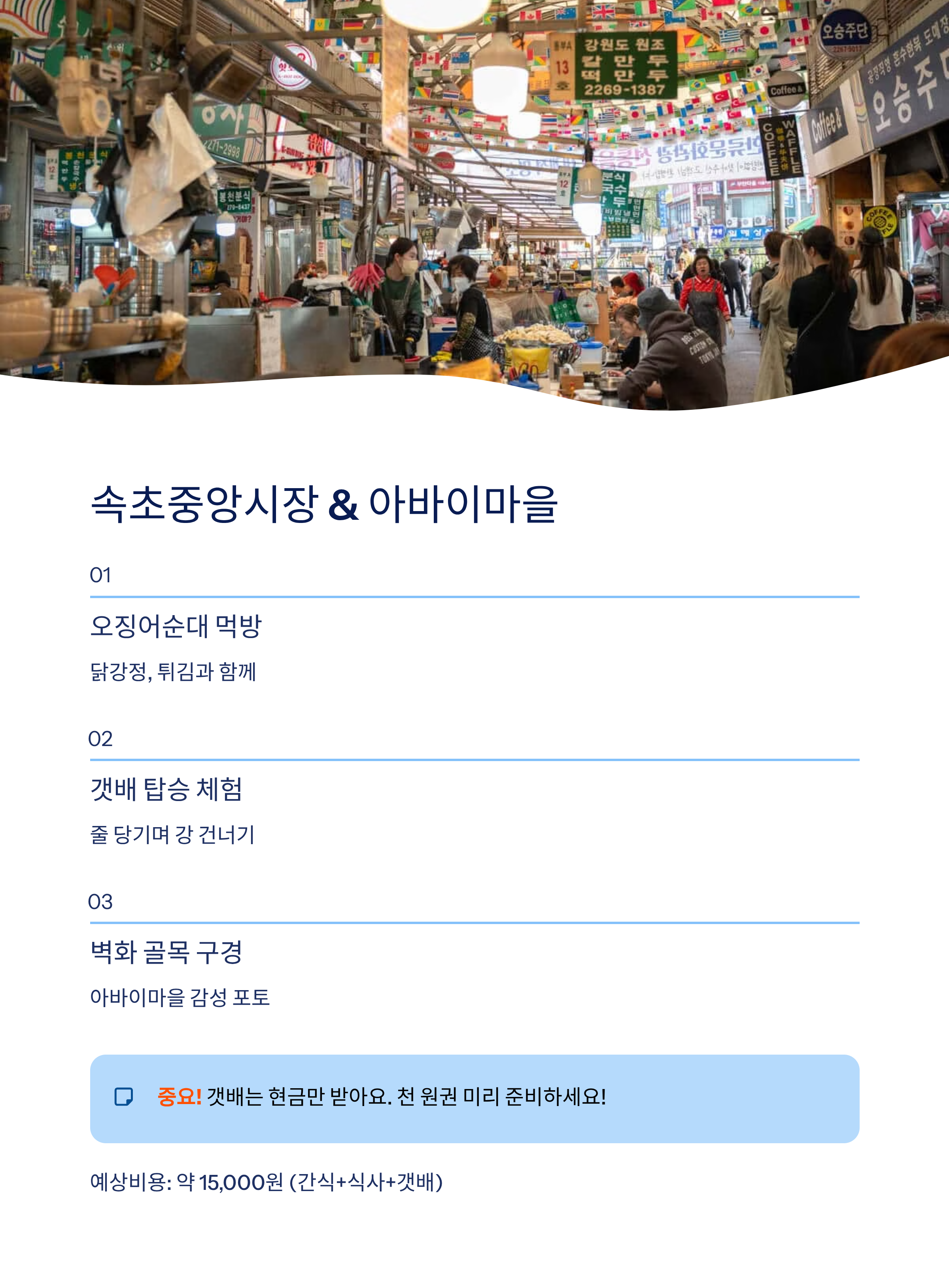 속초 대표 전통시장과 '갯배'로 연결된 추억의 아바이마을 거리즐길거리