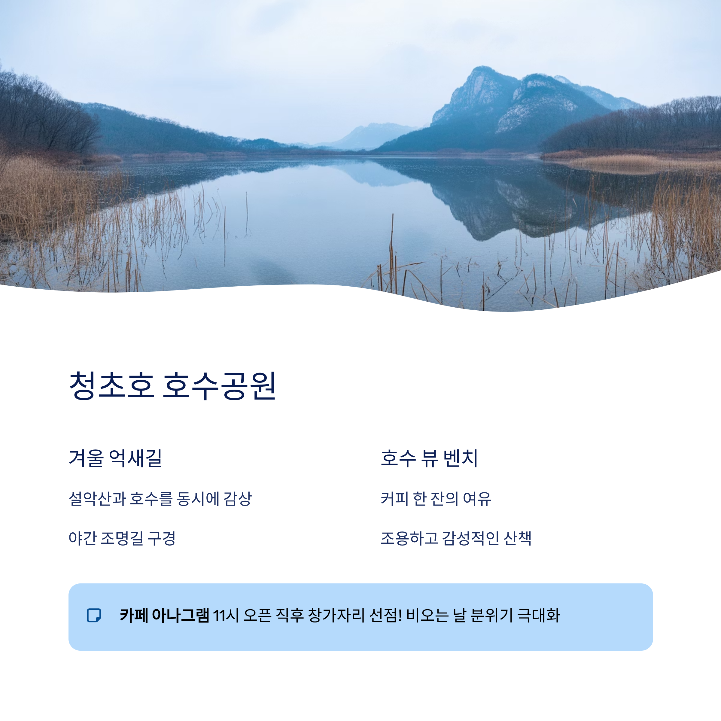 "속초 바다도 좋지만 청초호는 정말 조용하고, 나만 알고 싶은 곳이에요."