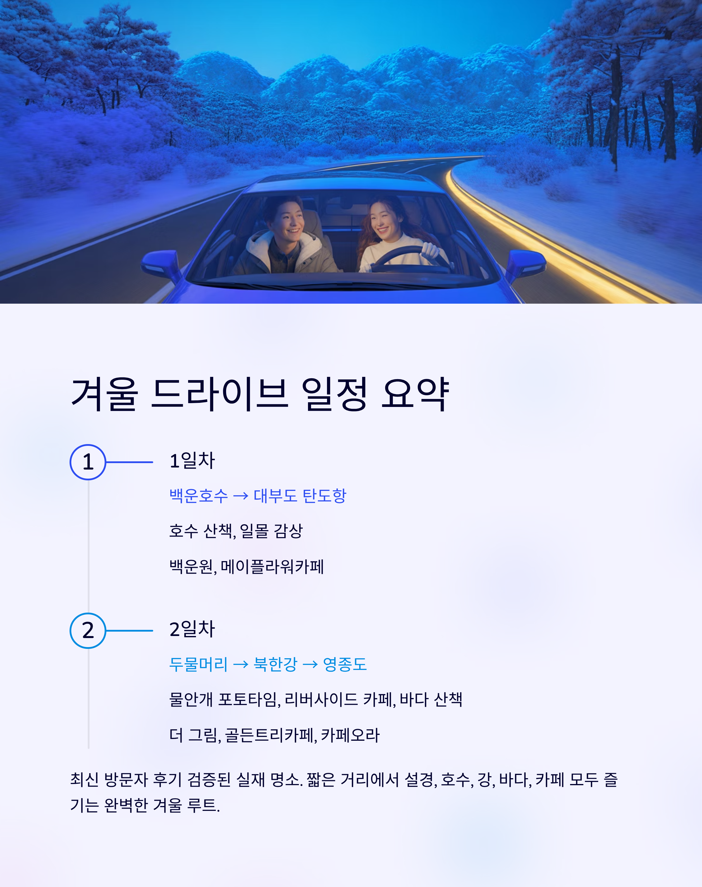 겨울 드라이브 여행 일정 요약