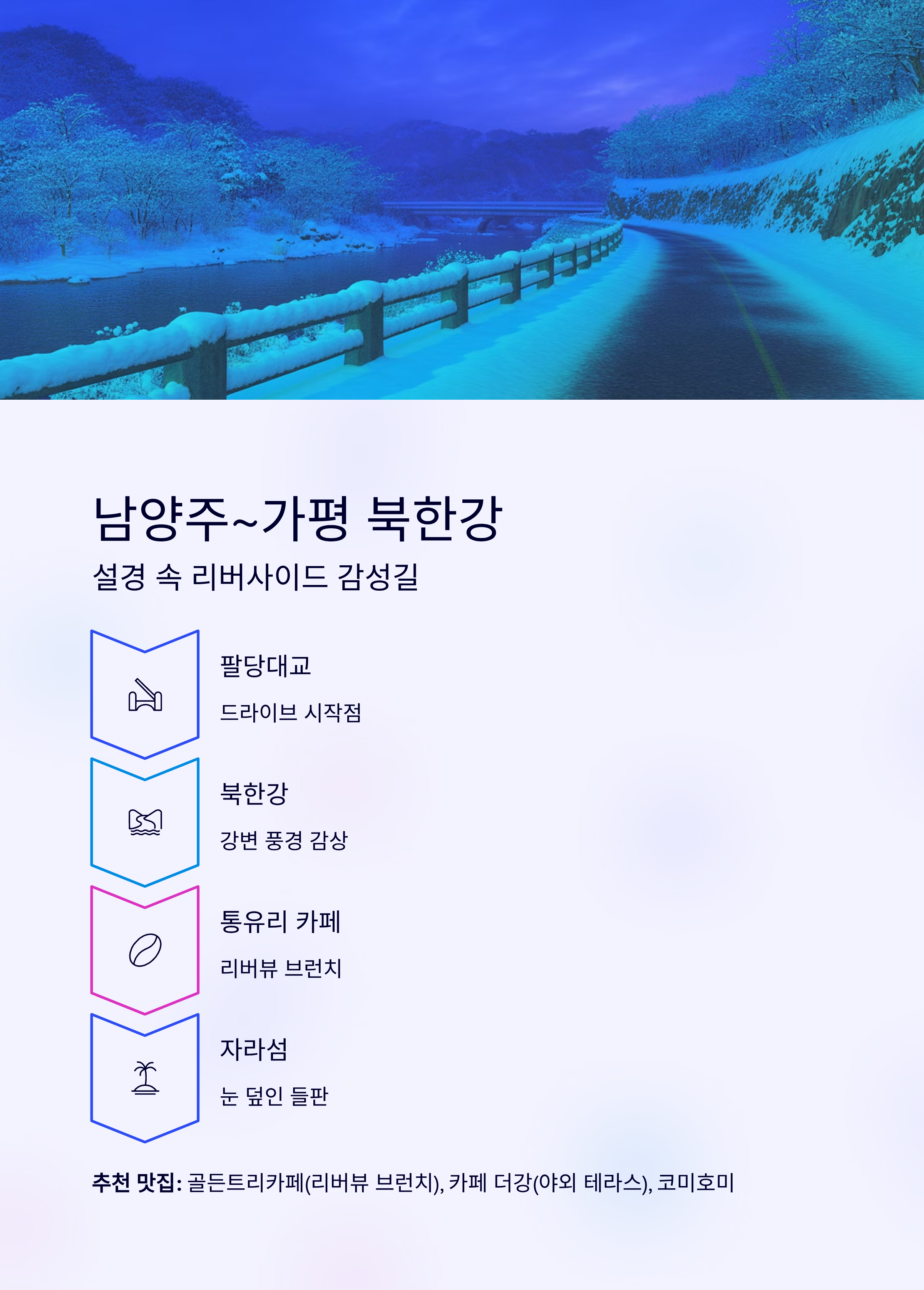 남양주~가평 북한강 드라이브 – 설경 속 리버사이드 감성길