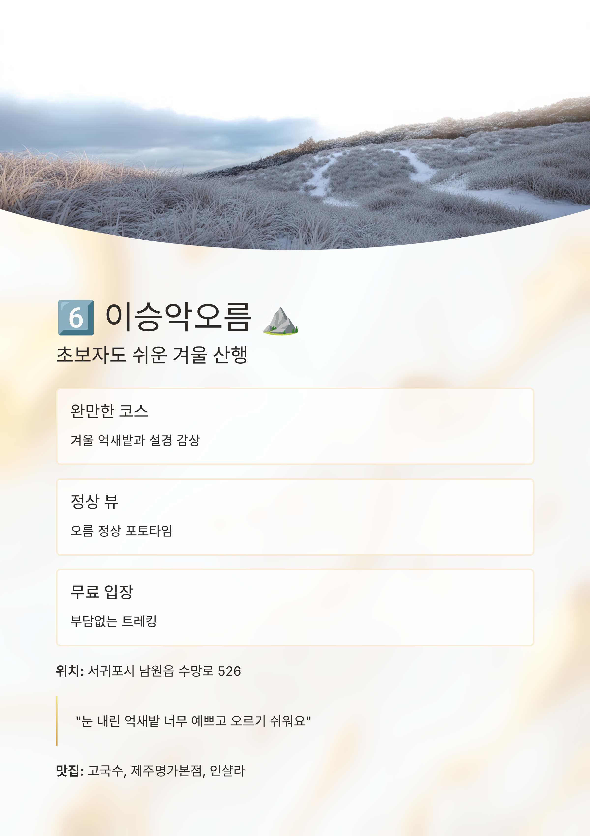 6️⃣ 이승악오름 ⛰ – 초보자도 쉬운 겨울 산행