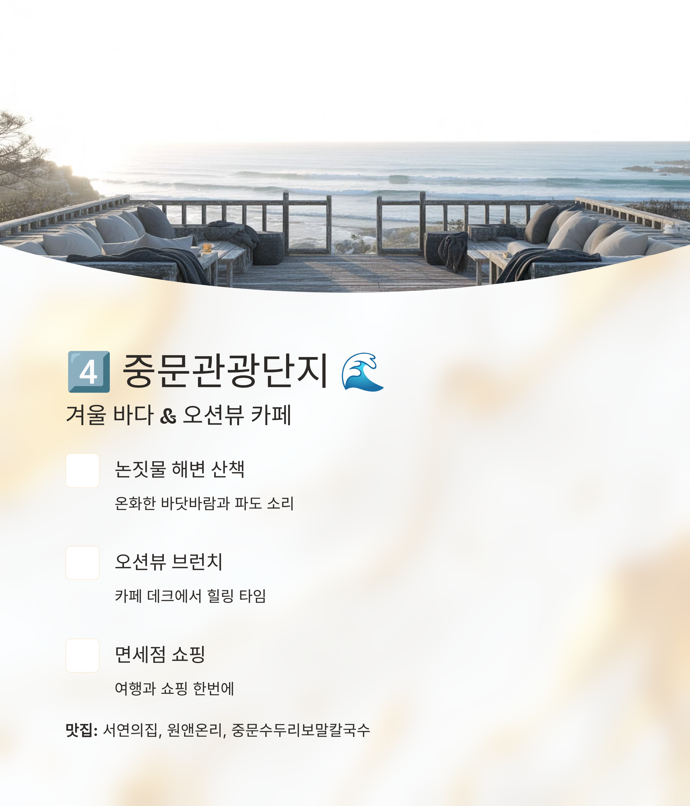 4️⃣ 중문관광단지 🌊 – 겨울 바다 & 오션뷰 카페