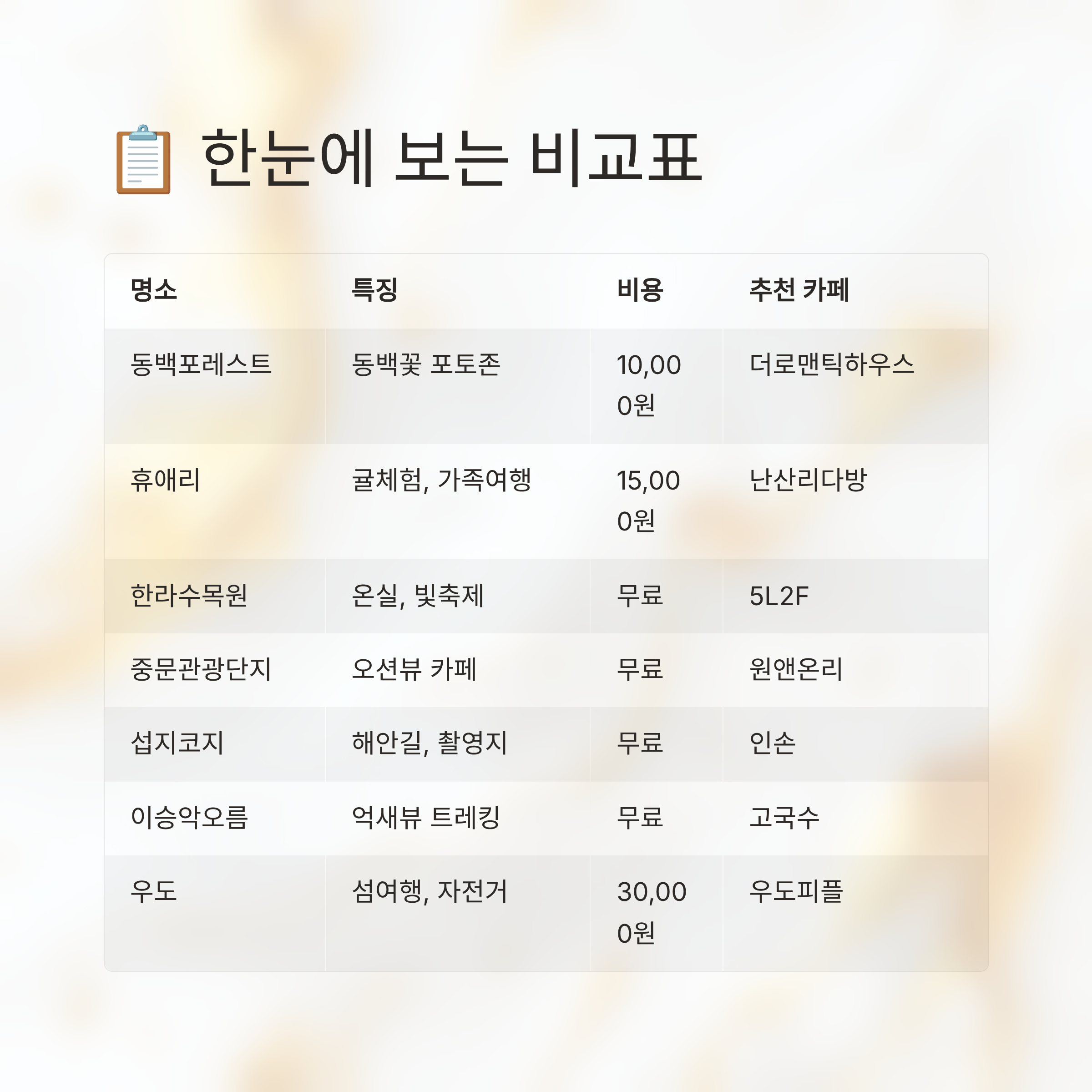 명소 주요 특징 비용(원) 추천 맛집/카페