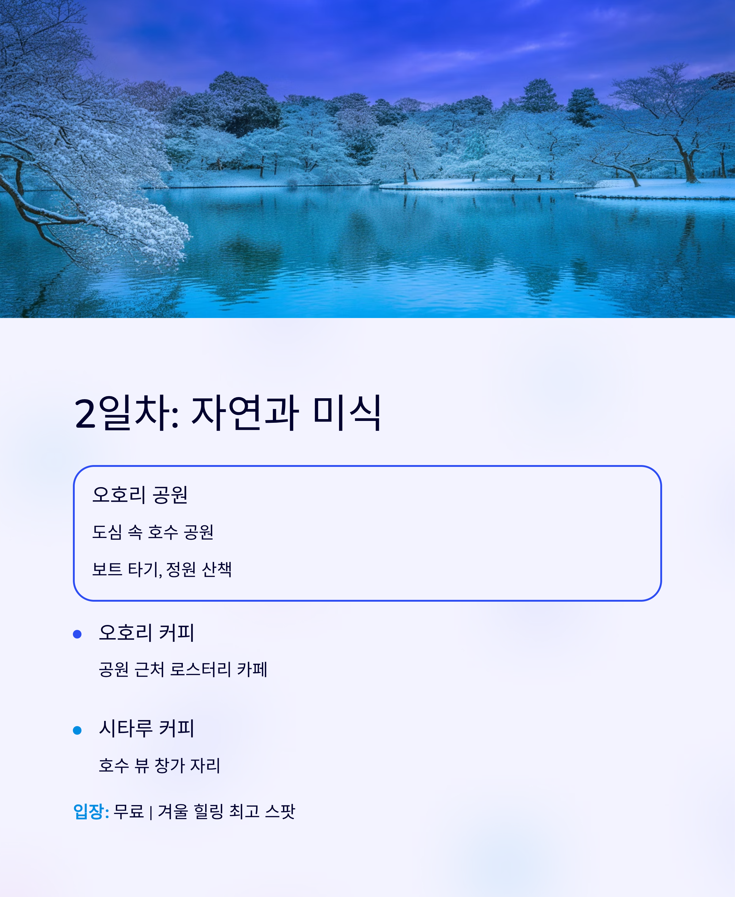 2일차: 겨울 미식과 자연 속 힐링의 하루