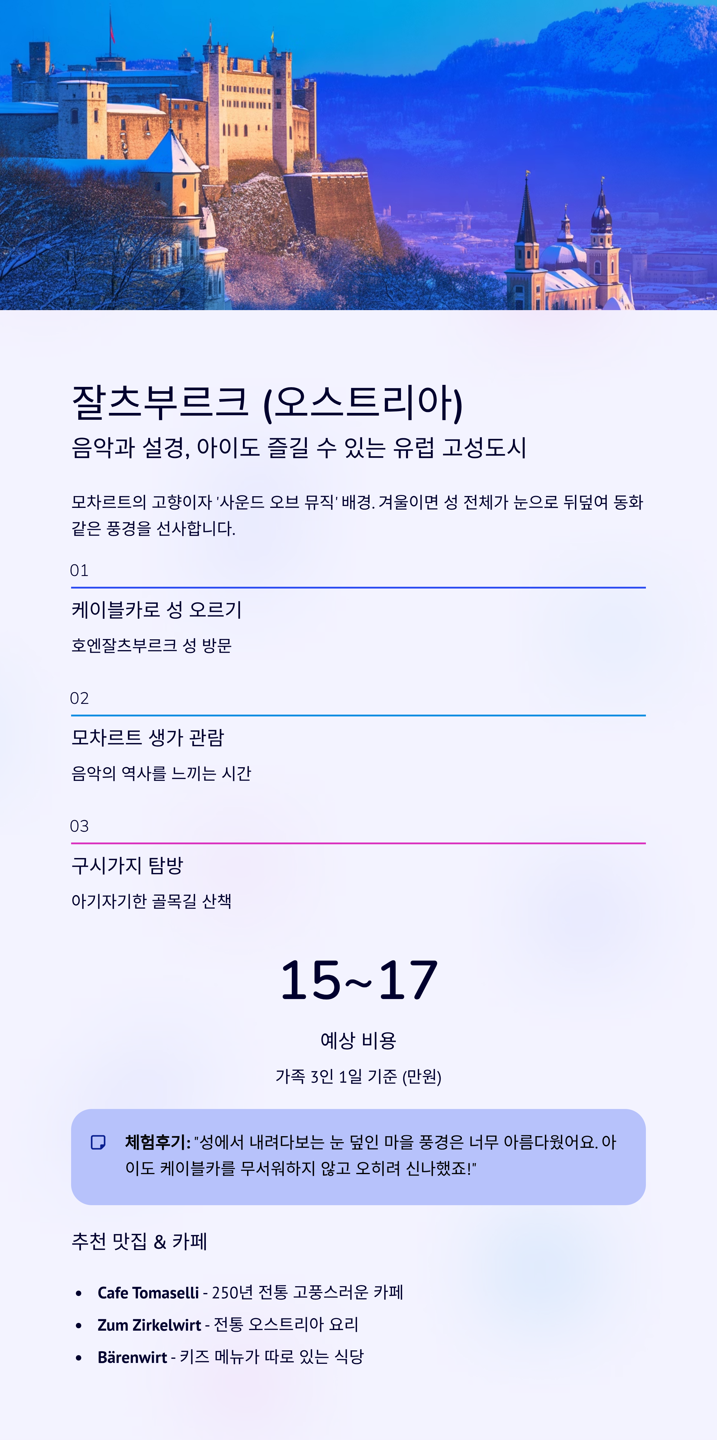 3. 잘츠부르크 (오스트리아) – 음악과 설경, 아이도 즐길 수 있는 유럽 고성도시