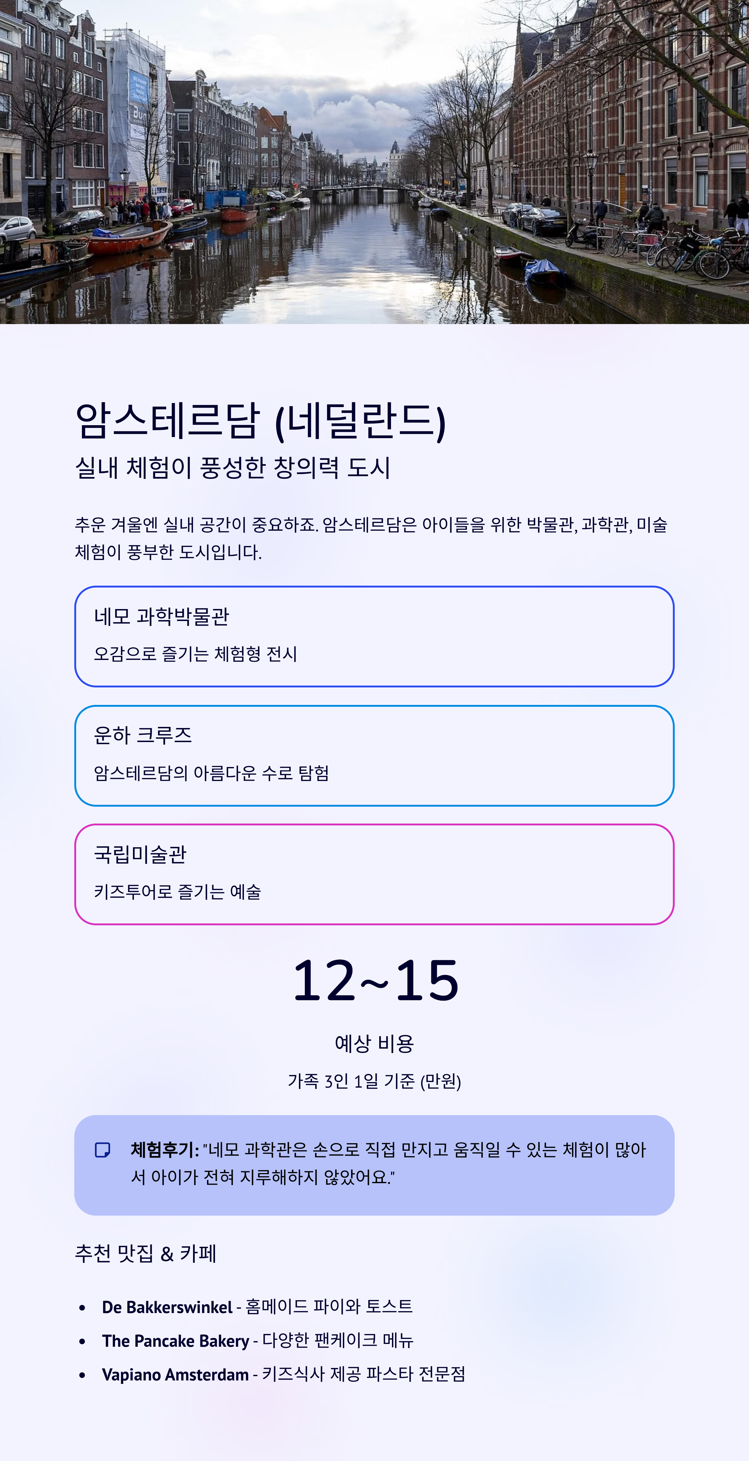 4. 암스테르담 (네덜란드) – 실내 체험이 풍성한 창의력 도시