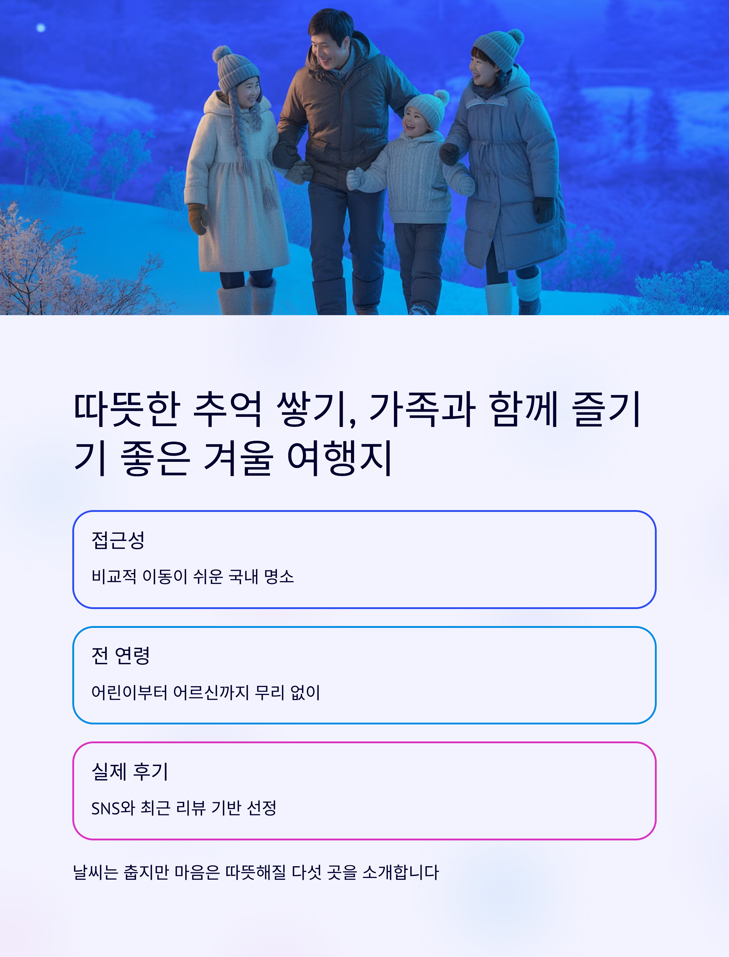 따뜻한 추억 쌓기, 가족과 함께 즐기기 좋은 겨울 여행지는 어디일까요?