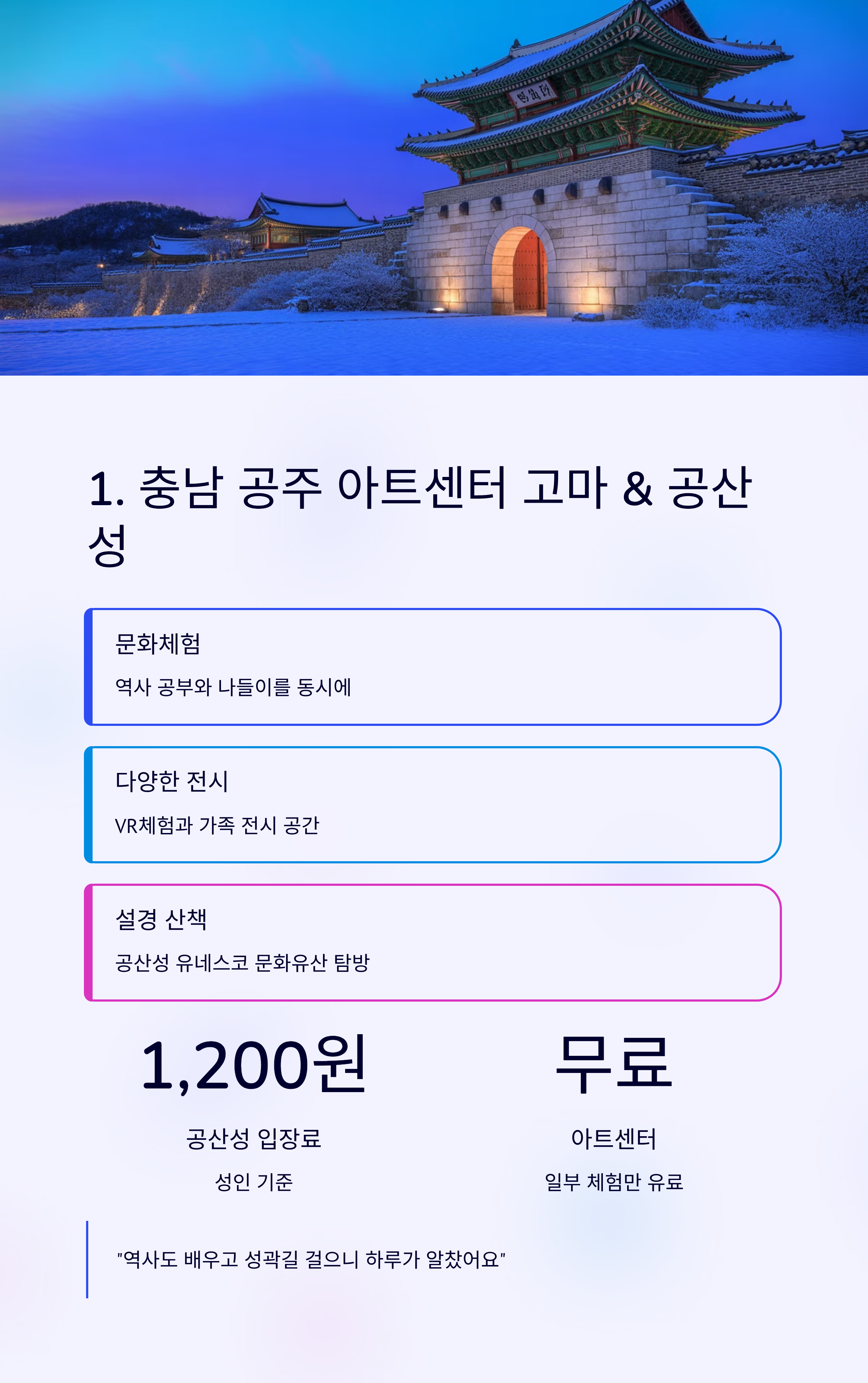 전시 관람, VR체험, 공산성 설경 산책, 유네스코 문화유산 탐방포토스팟