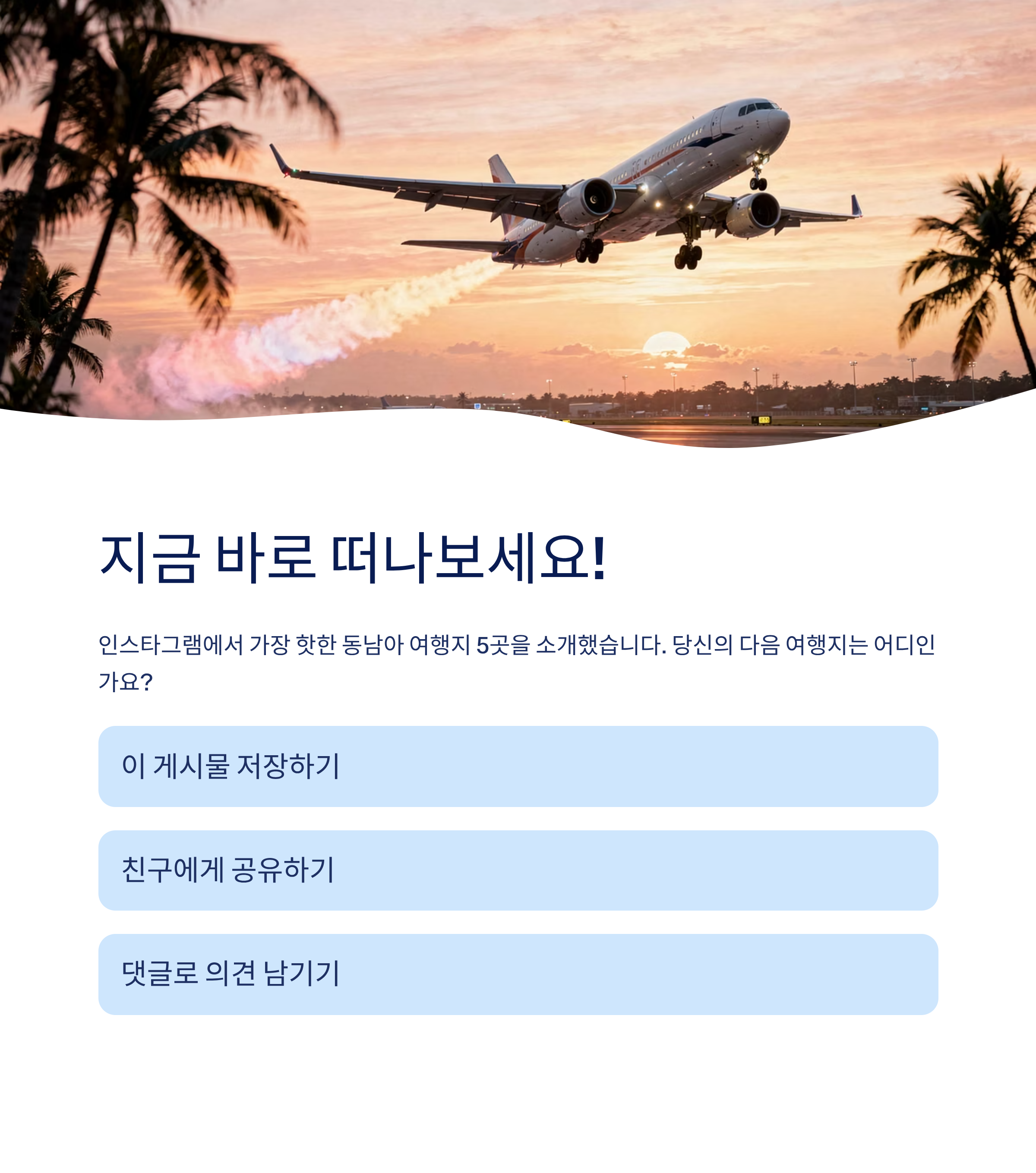 최근 인스타그램에서 가장 핫한 동남아 여행지 베스트 5여행 2025. 12. 23. 07:00