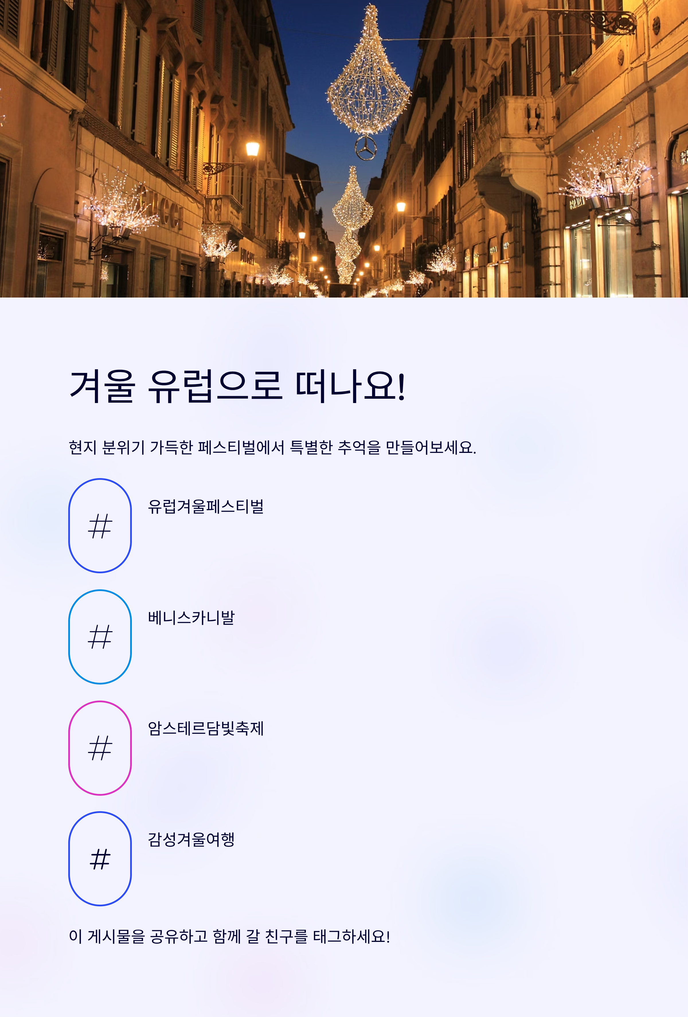 춥다고 방 안에만 있을 수 있나요? 유럽 겨울은 축제의 계절입니다!