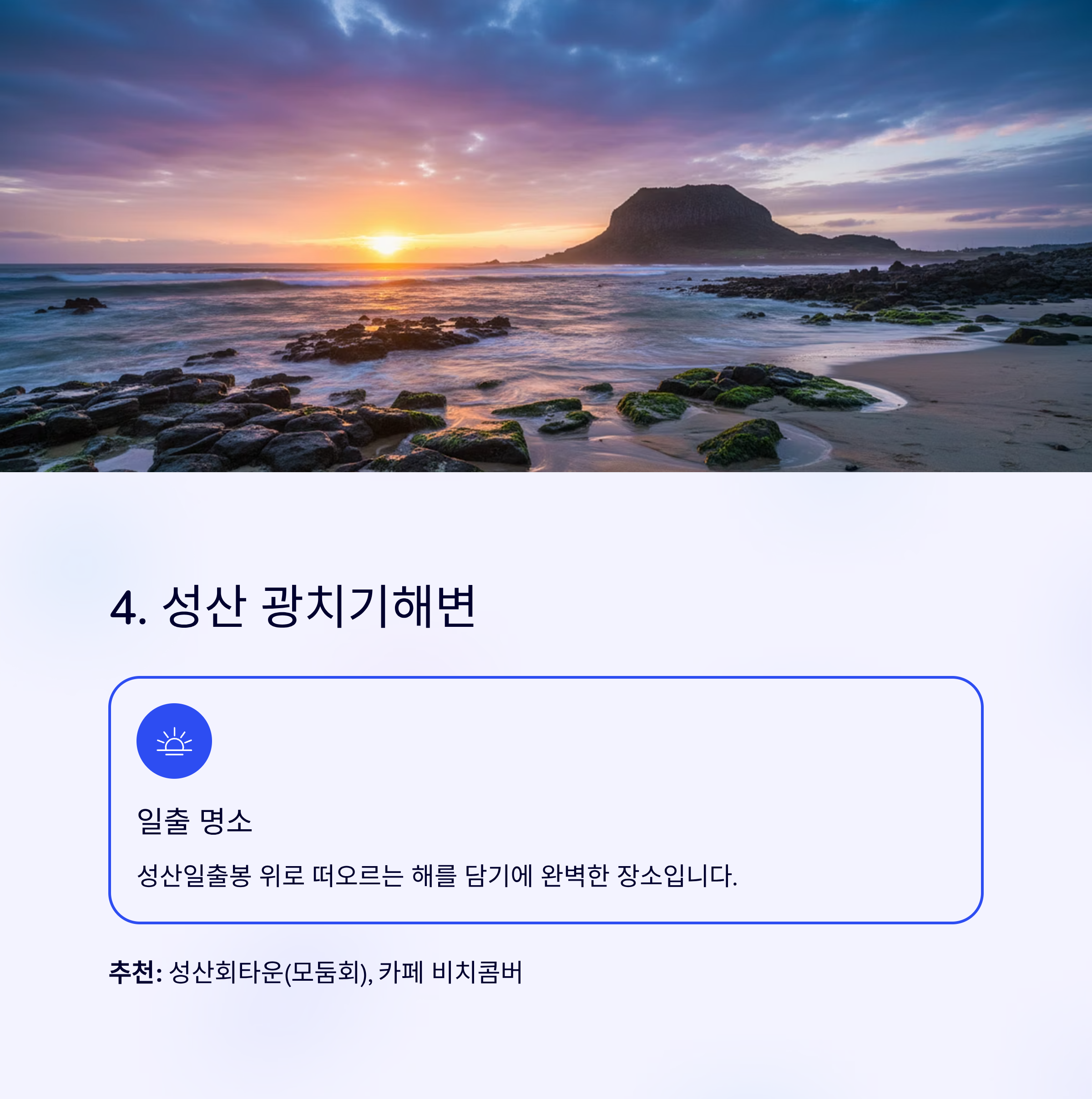 애월 곽지해수욕장 선셋뷰와 잔잔한 바다 곽지정 돌담길 무료 대정 송악산 둘레길 트레킹과 해안절벽 오솔길과 산방산 배경 무료 구좌 월정리 해변 감성 카페 + 맑은 바다 카페 앞 해변길 무료 성산 광치기해변 일출과 조용한 바다 일출봉 배경 해변 무료 협재 협재해수욕장 겨울에도 맑은 바다 야자수 + 해변 무료