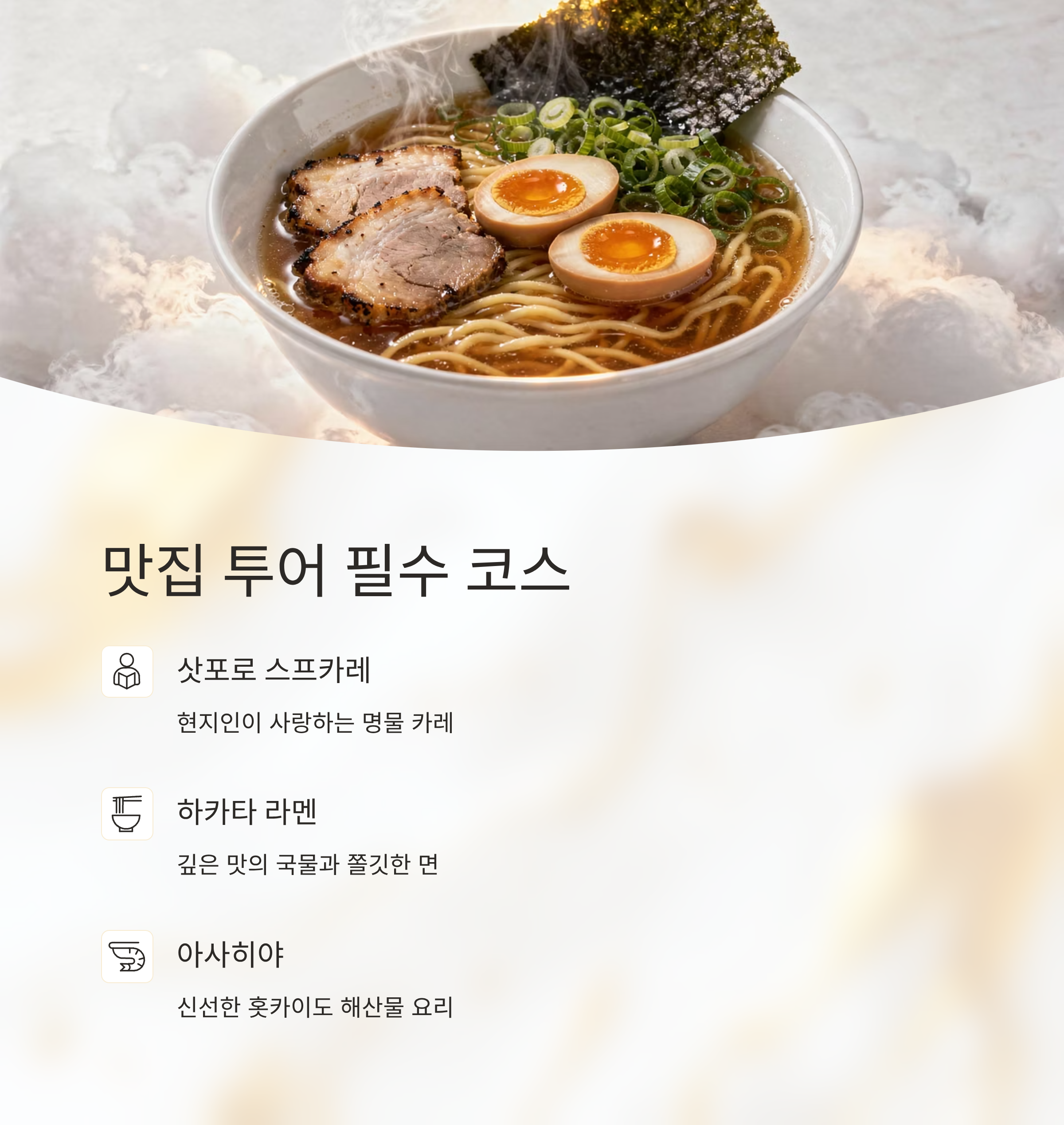 - 온천 체험: 삿포로에서 가까운 지치리 온천이나 오타루 온천에서 온천을 즐길 수 있습니다.