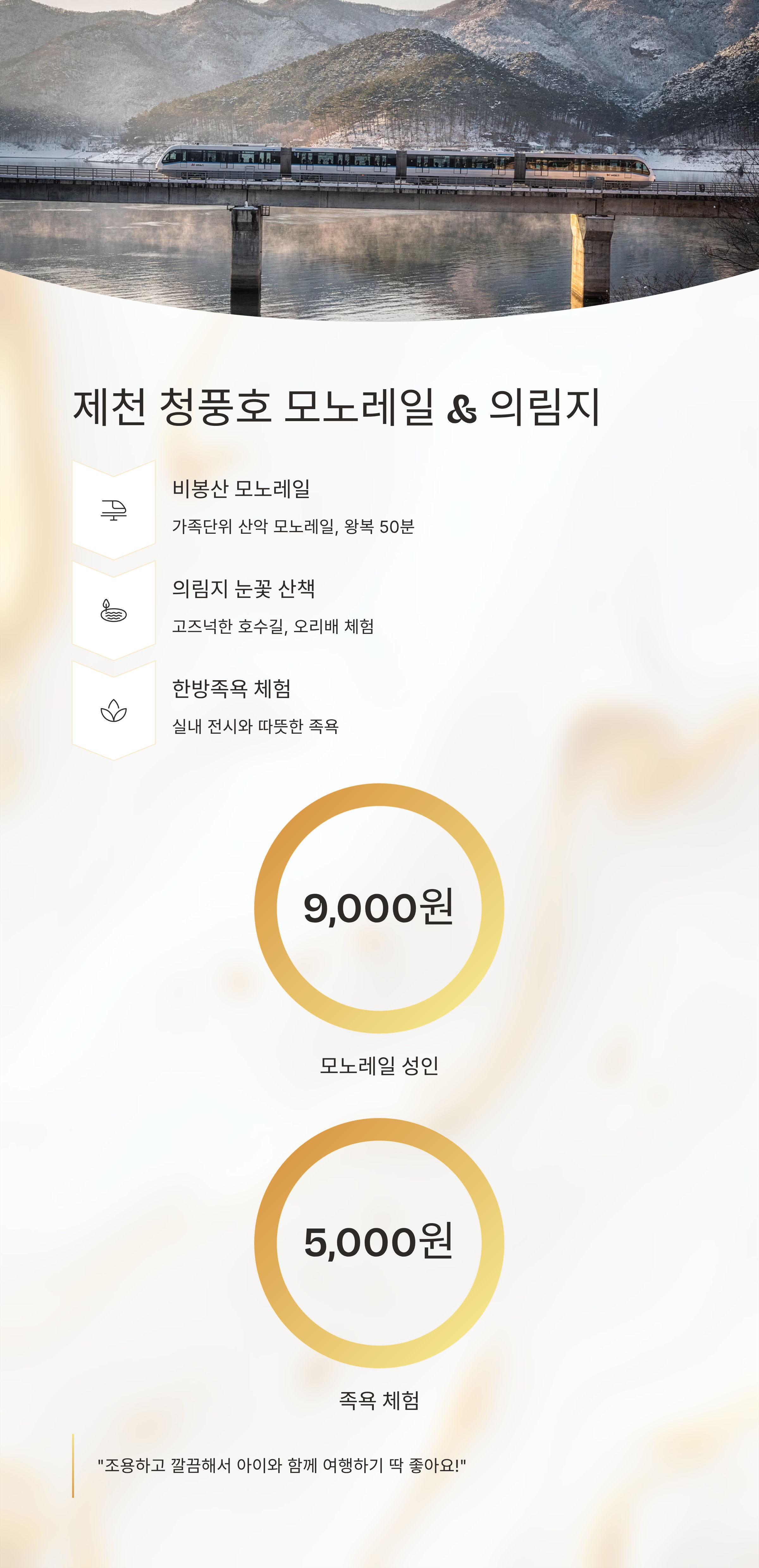 짧은 일정 안에서도 힐링과 재미를 모두 누릴 수 있는 실속 코스! 이번 겨울은 가볍게 떠나보세요.