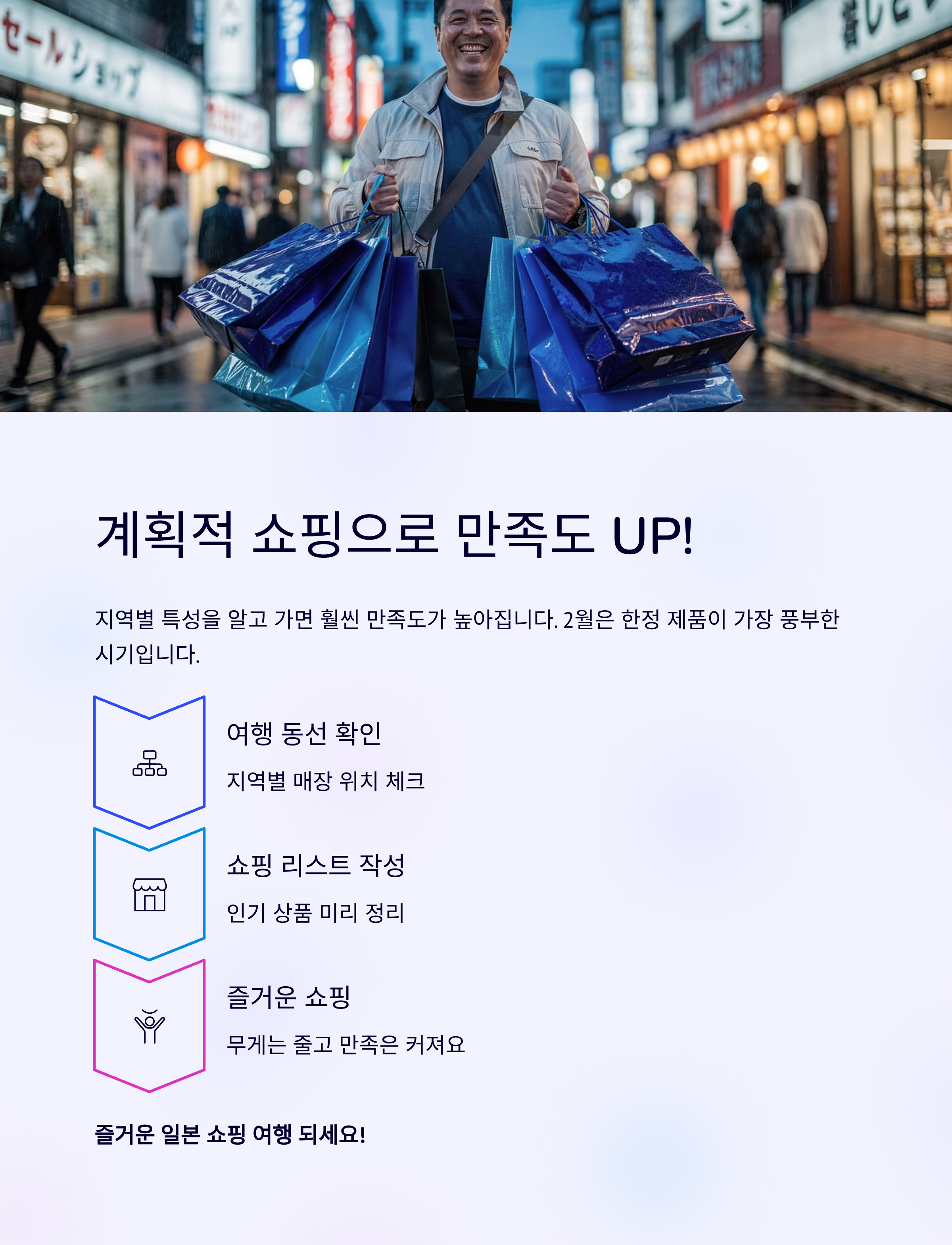 계획적으로 쇼핑하면 무게는 줄고 만족은 더 커질 거예요.즐거운 일본 쇼핑 여행 되세요!