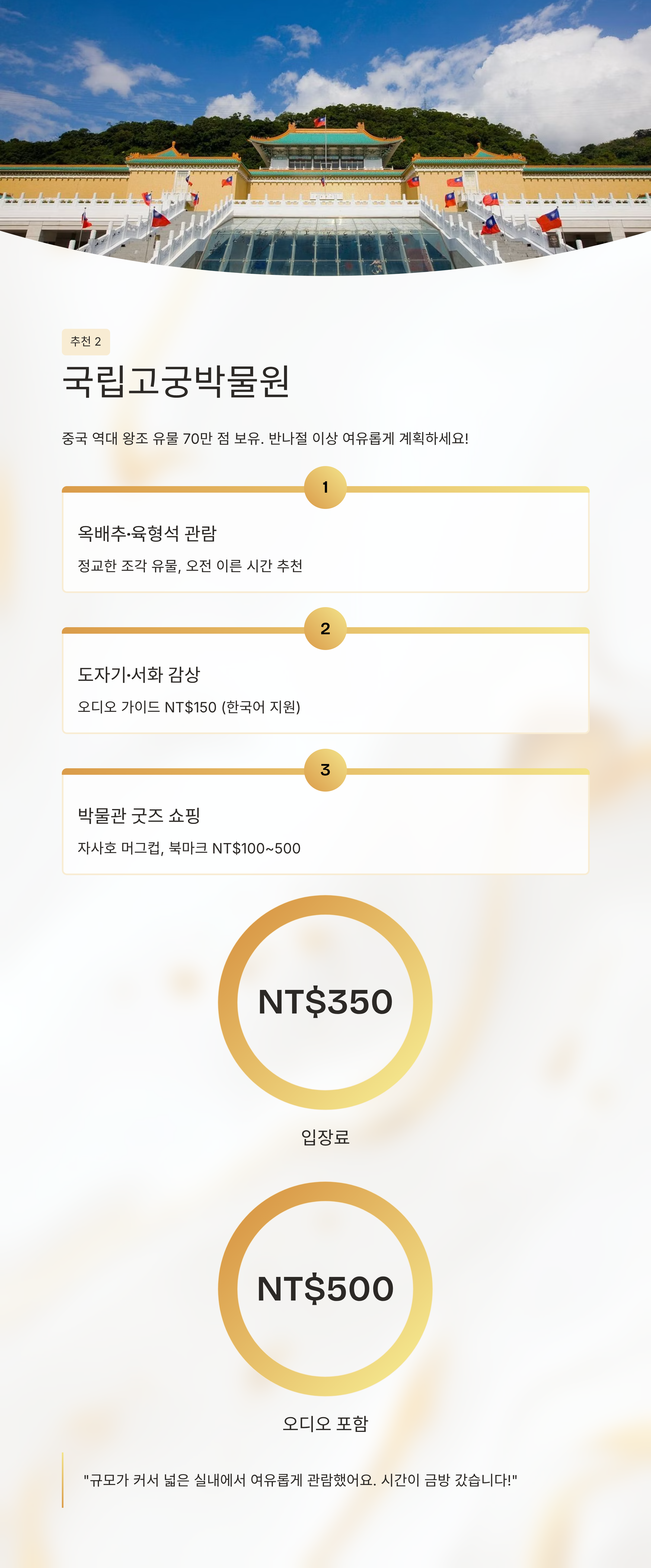 입장료 NT$350, 오디오 포함 NT$500 전후체험 후기