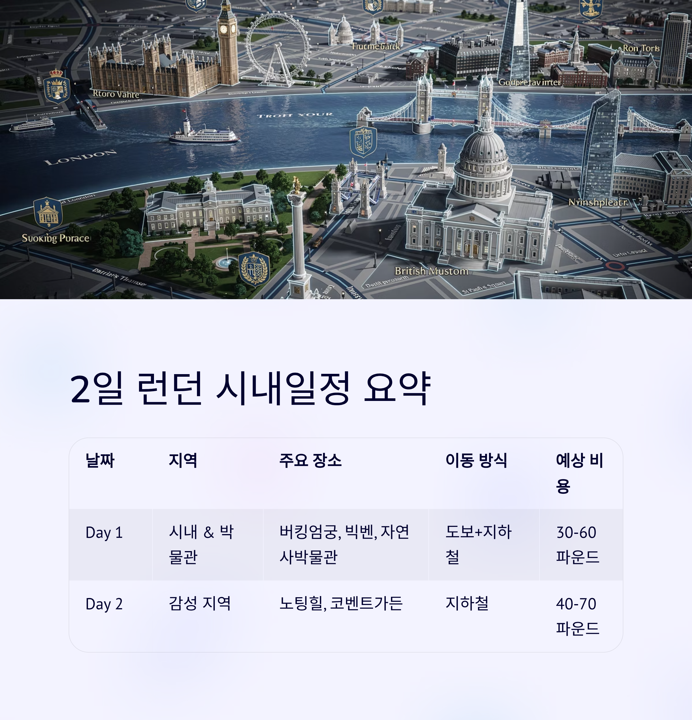 2일 런던 시내일정 요약표