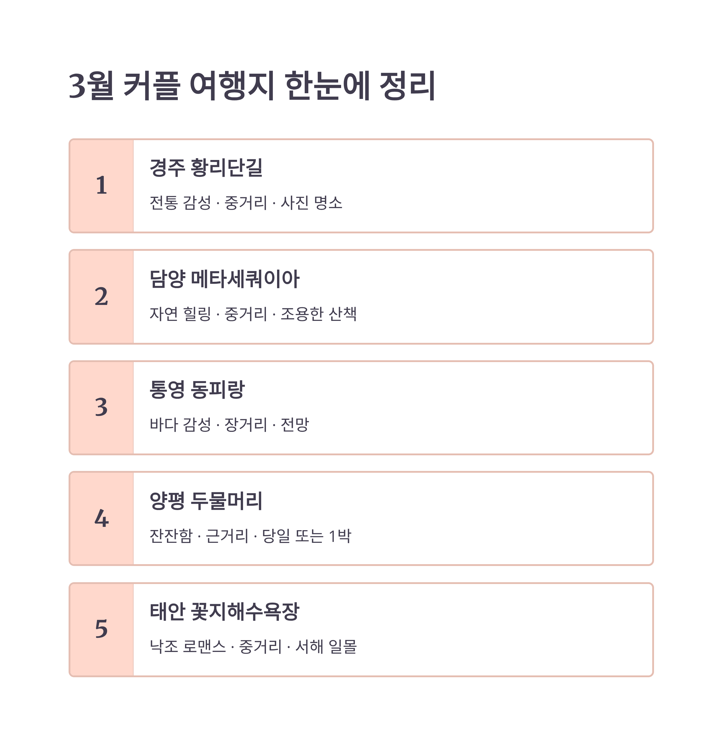 맺음말: 3월 커플 여행지 한눈에 정리