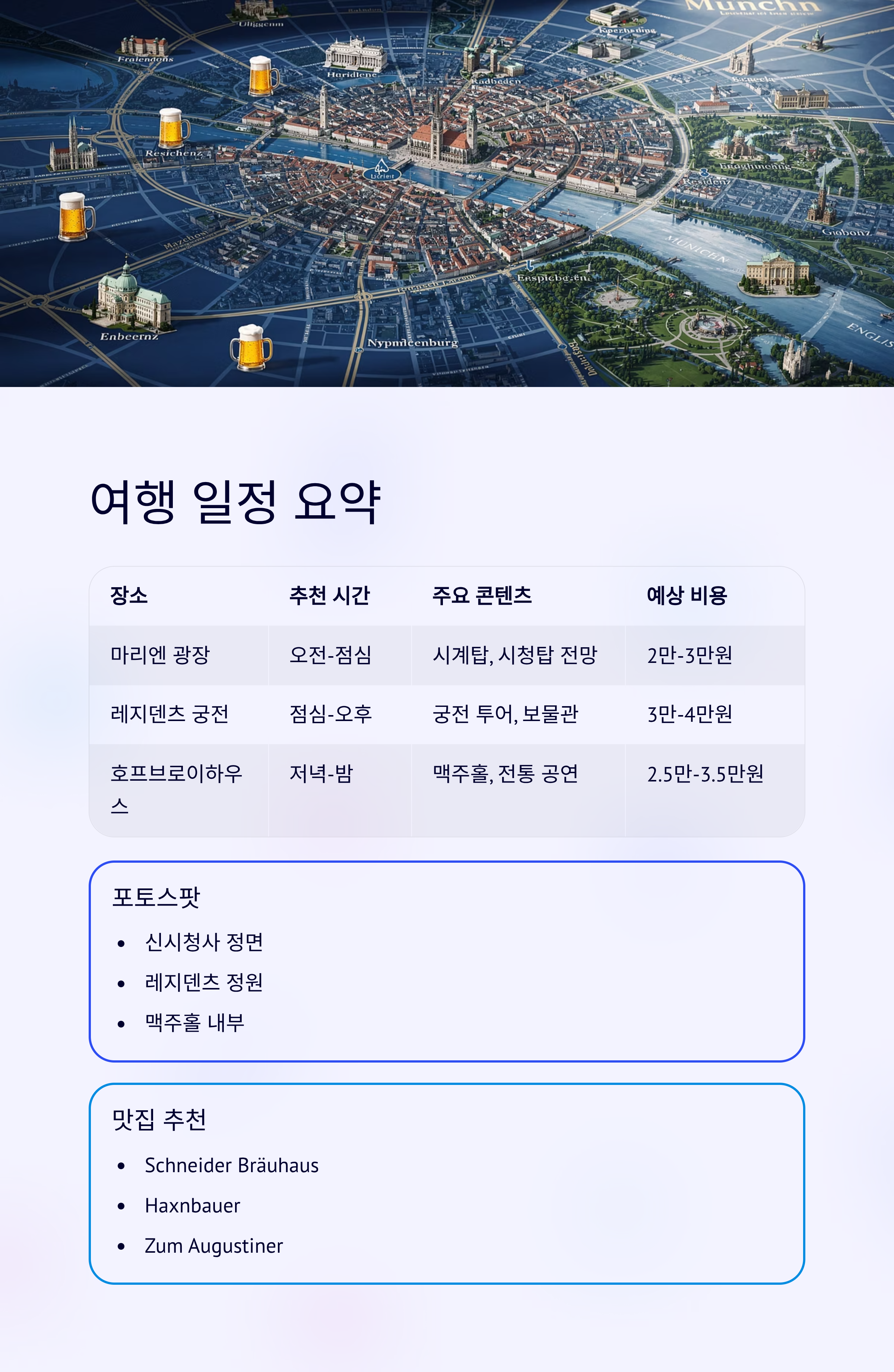 장소추천 시간주요 콘텐츠1일 예상 비용포토스팟