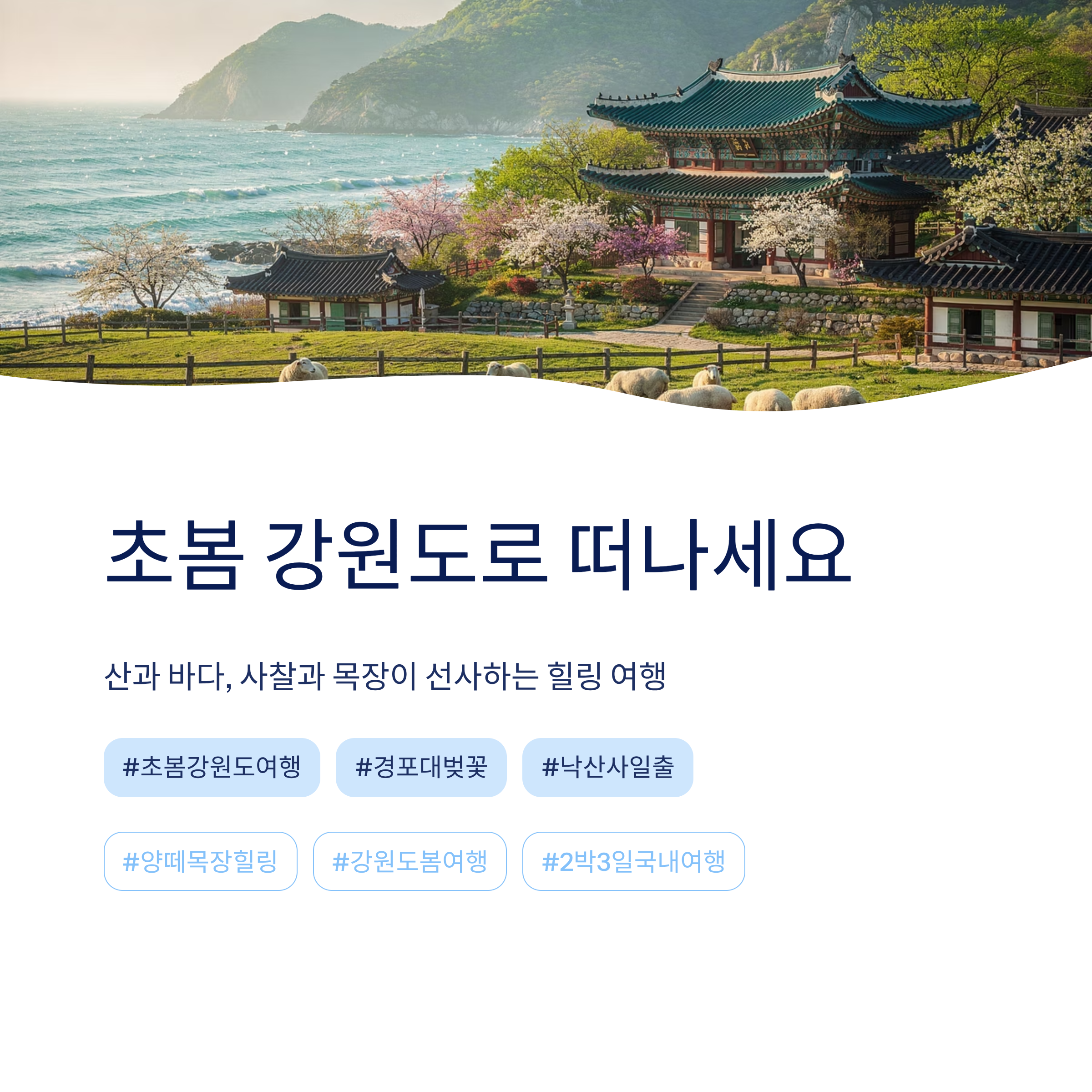 산과 바다, 고요한 사찰과 푸르른 고원목장까지, 강원도는 초봄의 감성과 잘 어울리는 여행지를 다양하게 품고 있습니다.