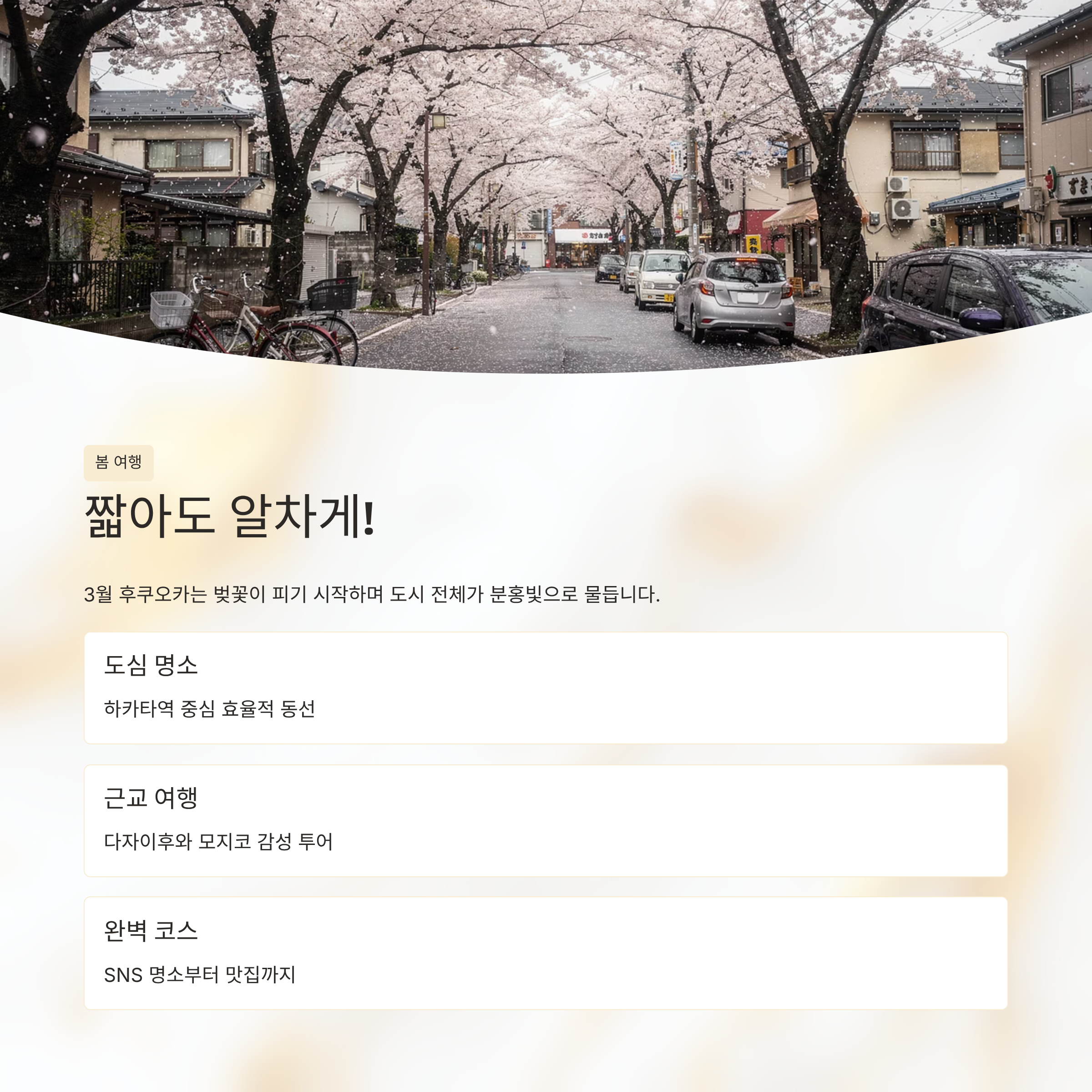 짧아도 알차게! 후쿠오카와 근교 명소를 담은 봄맞이 1박 2일 여행 가이드