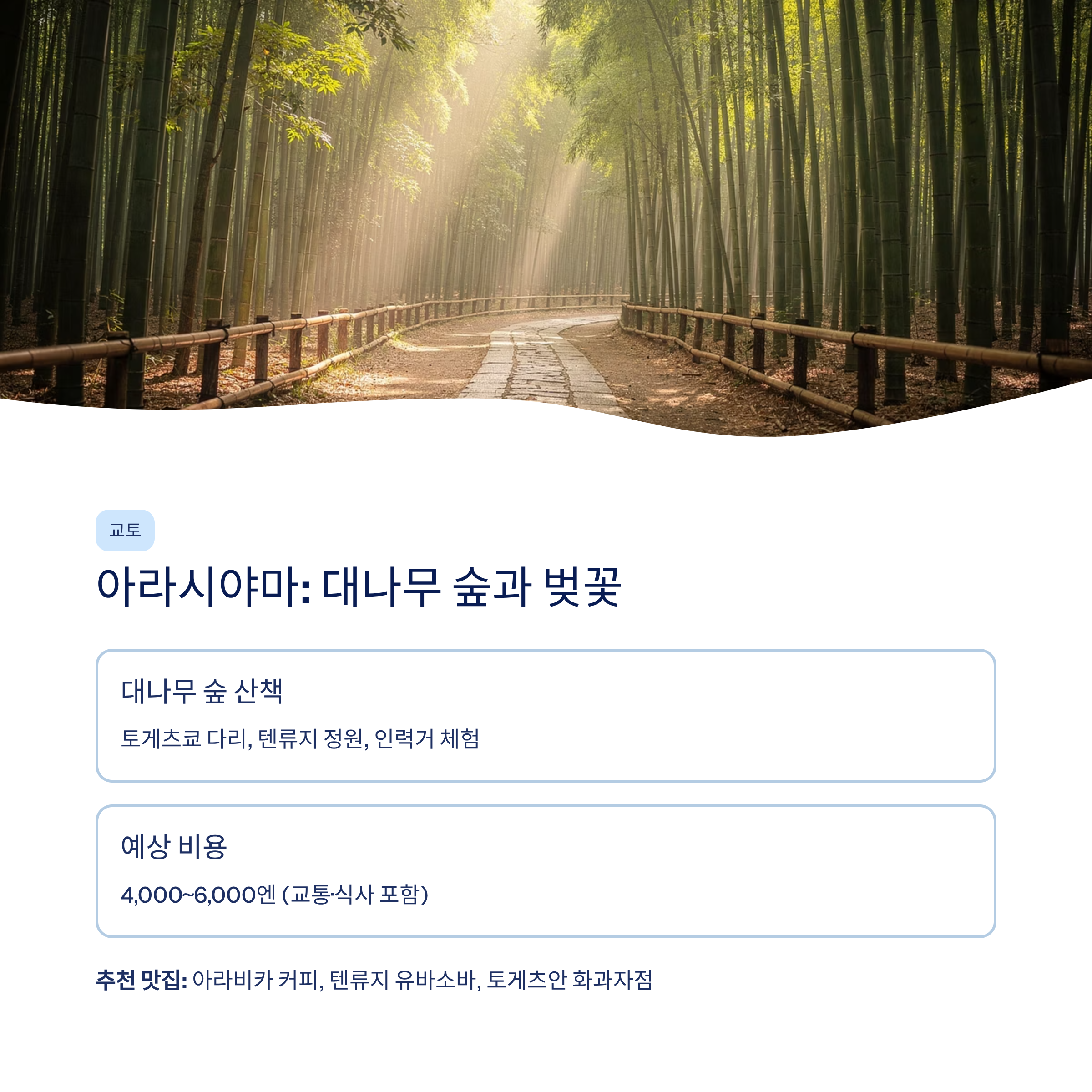 1. 교토 아라시야마: 대나무 숲과 벚꽃의 낭만
